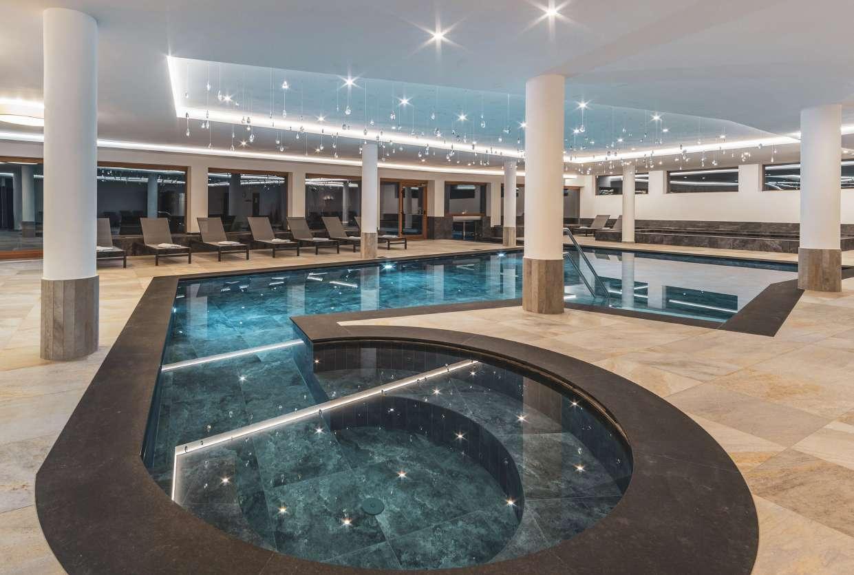• In- und Outdoorpool inkl. Whirlpool und weitläufiger Panorama-Liegewiese