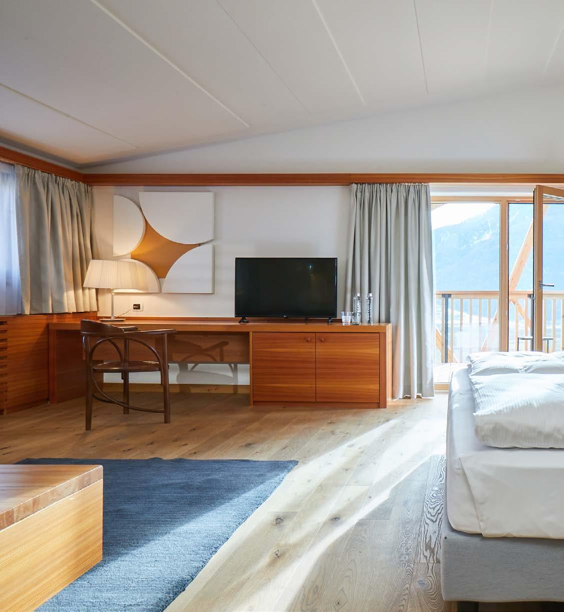 Il nuovo concetto di lusso discreto si ritrova in tutte le quarantaquattro camere del Garberhof e trova espressione in ogni gesto dei padroni di casa e dal team.