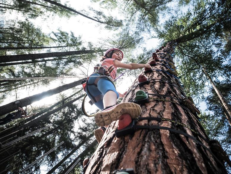 Between suspension bridges and ropes floating in the air like lianas or riding bicycles worthy of a circus act – at Skytrek, climbers of all ages defy gravity like nimble lizards. The adventure park is open from April to October and offers ten courses