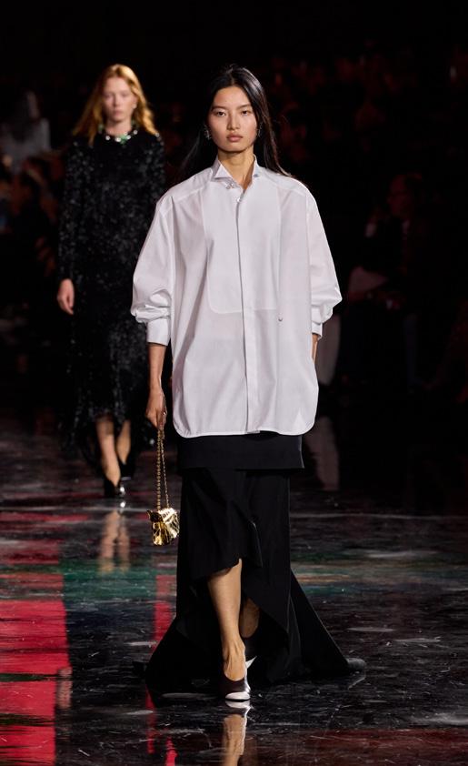 La camicia bianca è uno dei grandi classici della stagione. Dai tagli ampi o dalle linee definite, conferisce al contempo un aspetto tradizionale e moderno. Pierpaolo Piccioli per Balenciaga e Matthieu Blazy per Chanel la propongono in abbinamento a una gonna nera, simbolo di un’eleganza che convince per sottrazione.