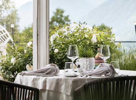 The scent of freshly brewed coffee wafts through the hotel in the morning, enticing you to the panoramic terrace, where breakfast is served amidst olive trees and lavender bushes, offering you the first little break of the day. In the early afternoon, enjoy fresh salads and homemade cakes that will spoil you with a touch of sweet indulgence. The next culinary experience takes place in the early evening: as the sun dips behind the mountains, the bartender serves you a cocktail by the pool. This drink is the perfect prelude to the 5- to 7-course menu, which – accompanied by matching wines – forms the golden finale in the La Pergola restaurant.