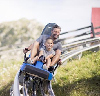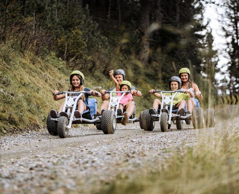 “barefoot lakes” invite you to splash around and take a refreshing break. The highlight however awaits at the end: the Funbob, the longest summer toboggan run in South Tyrol. The family rushes down into the valley with a loud cheer, their hair blowing in the wind and their hearts pounding with excitement. “Again!” the children shout. The parents are certain: a day in the realm of the giants is an unforgettable experience.