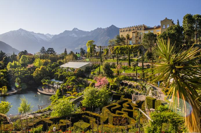 Merano and its countryside offer endless possibilities – primarily in terms of outdoor activities. Follow the hiking trails, pursue your passion for golf at the renowned courses of the area, or hop into a convertible and drive past apple orchards and vineyards towards a mountain pass. A special event is waiting for all classic car lovers in Scena –you can read more about it in this magazine. Whatever you decide to do, you’ll always be surrounded by stunningly picturesque vistas, and when you head back, you can enjoy an aperitif under the palm trees at Hotel Gnaid and dive further into the Dolce Vita lifestyle with a view of the Alps.