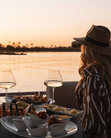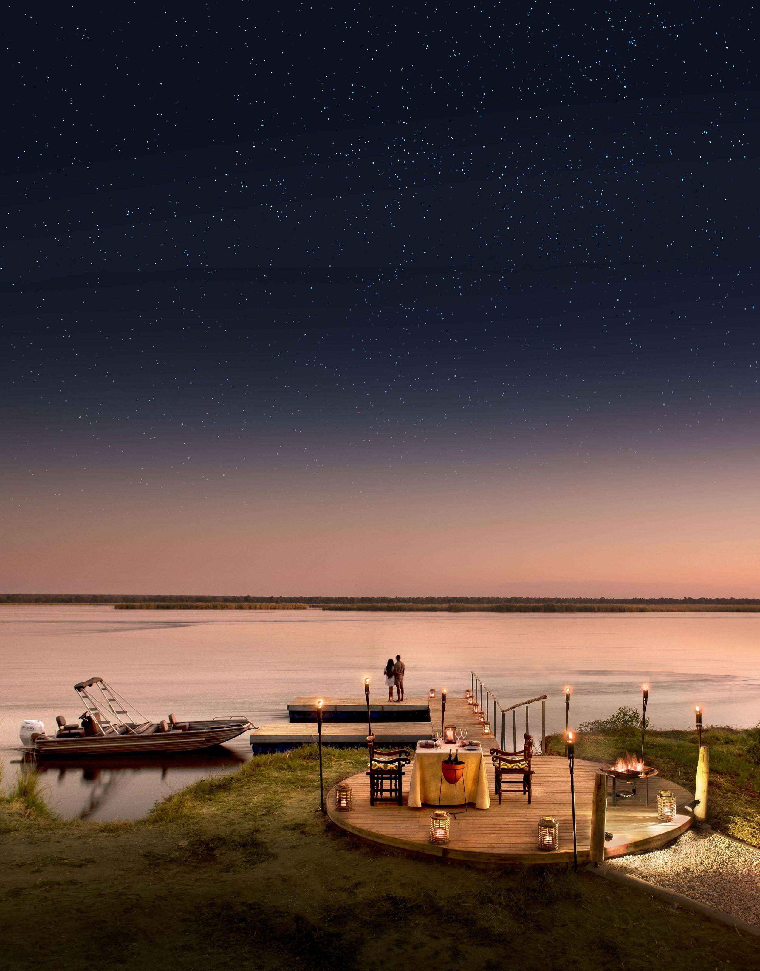 As the afternoon cools, you'll set out on another game drive or perhaps a boat safari or bush walk, offering a different perspective of the stunning landscape. As the sun sets, you'll pause for sundowners, sipping on a favorite drink while watching the sky transform into brilliant hues.
