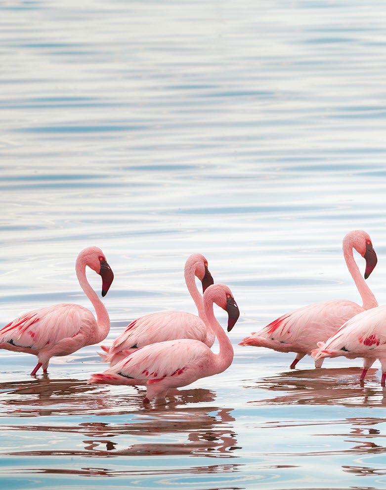 tree-climbing lions, elephants, and flocks of flamingos along the shimmering lake—its beauty once praised by Ernest Hemingway as “the loveliest I had seen in Africa.”