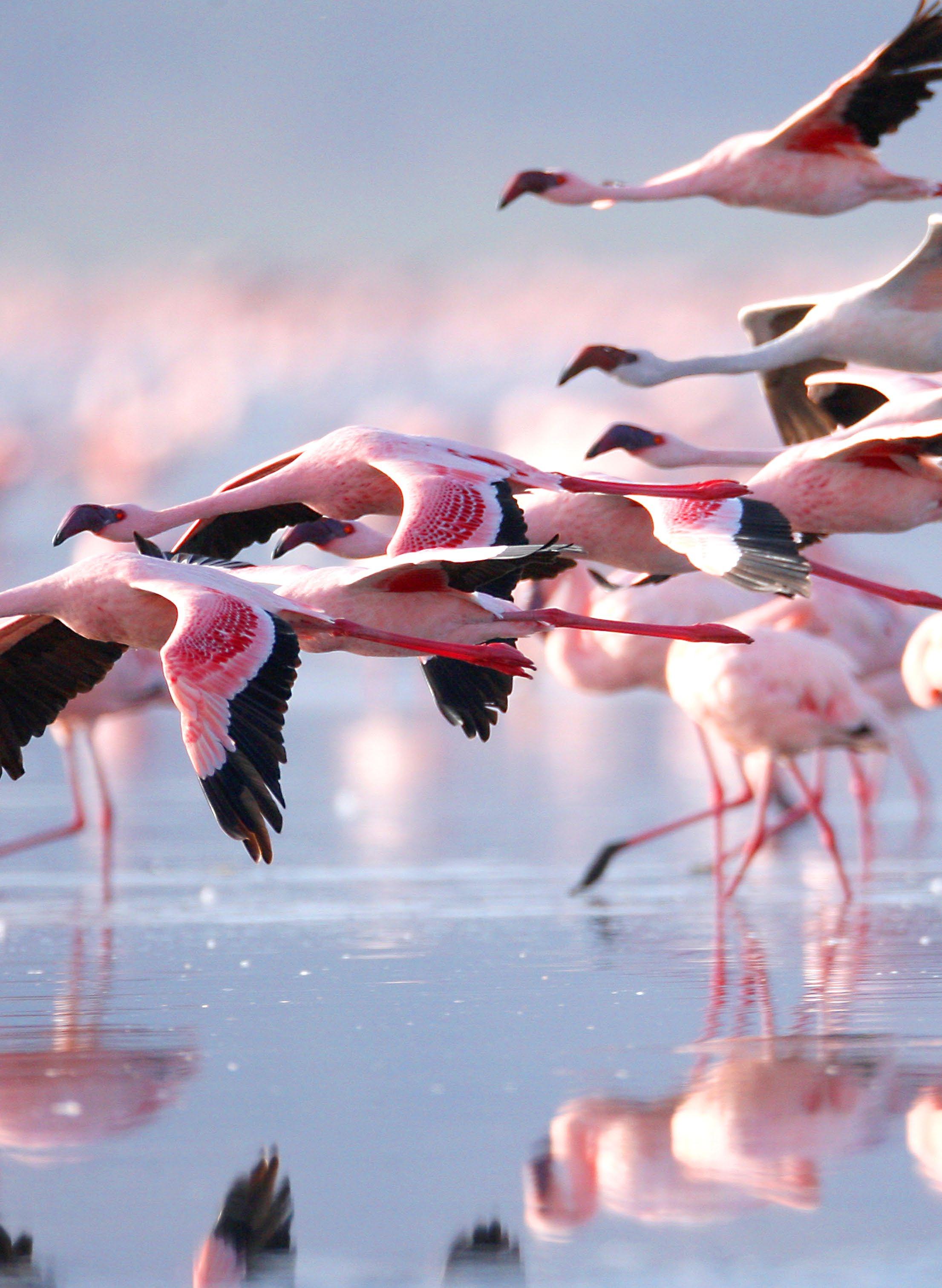 open grasslands and soda lakes teeming with flamingos. (BLD)