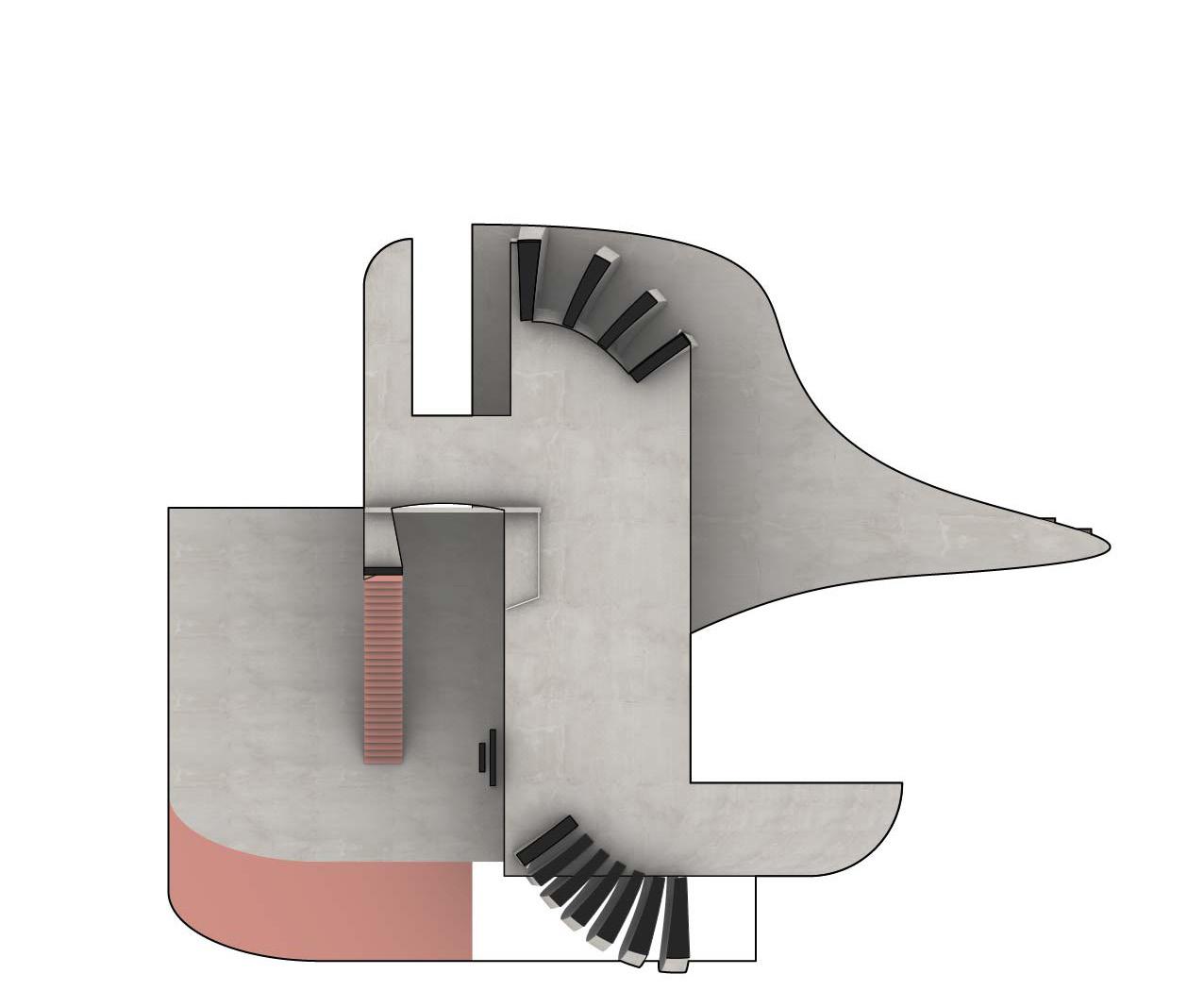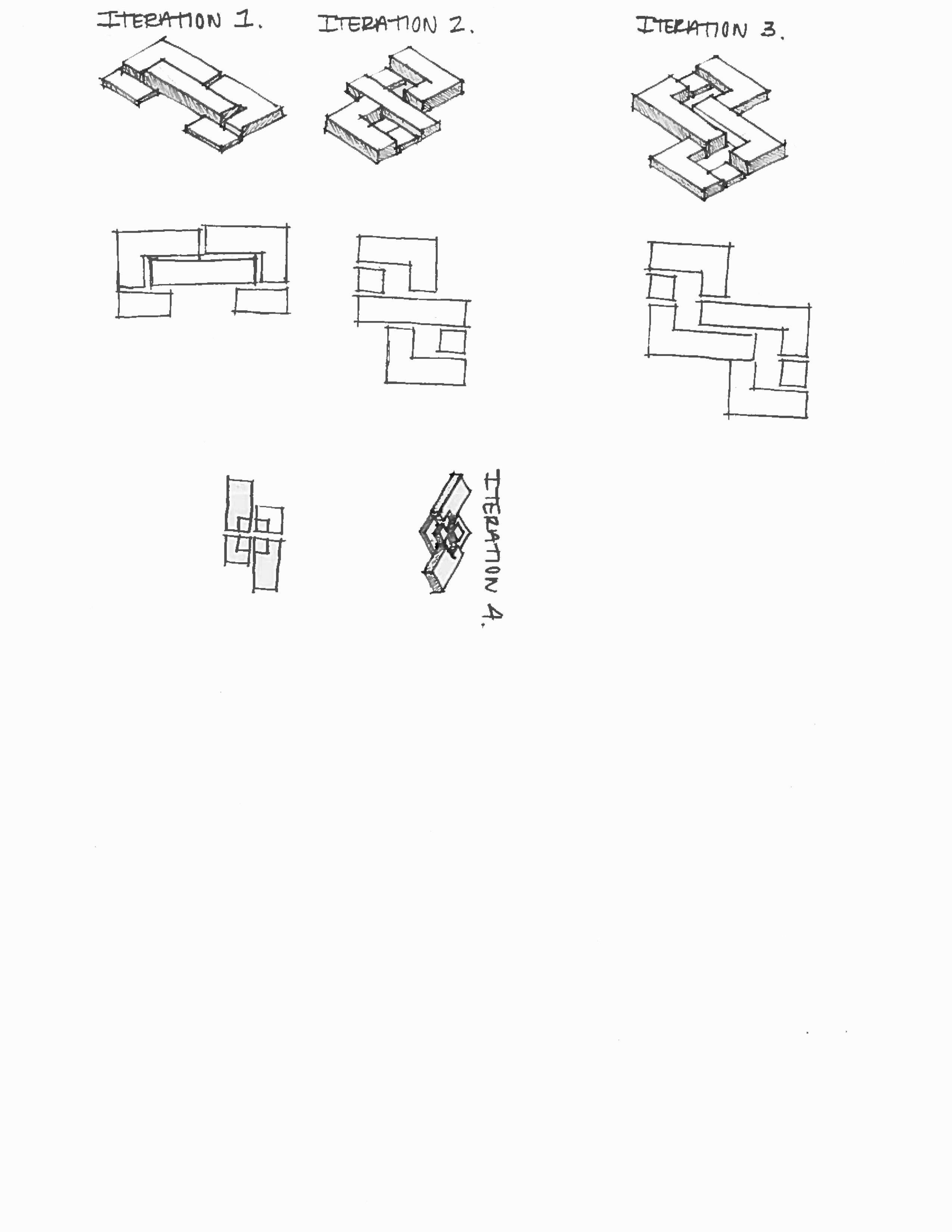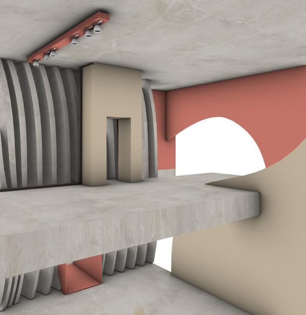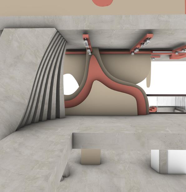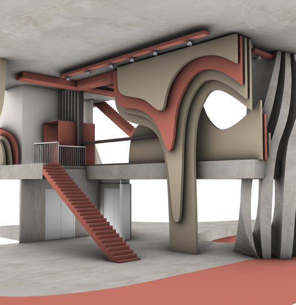 This project explores coloration and parametric fragments. In regards to the parametric fragments, there are two patterns of exploration that occur throughout the space: one a parametric object and a topographic object. The parametric object that serves as interior partitions, letting views and light into the interior spaces. And the topographic object serves as exterior partitions in most instances.