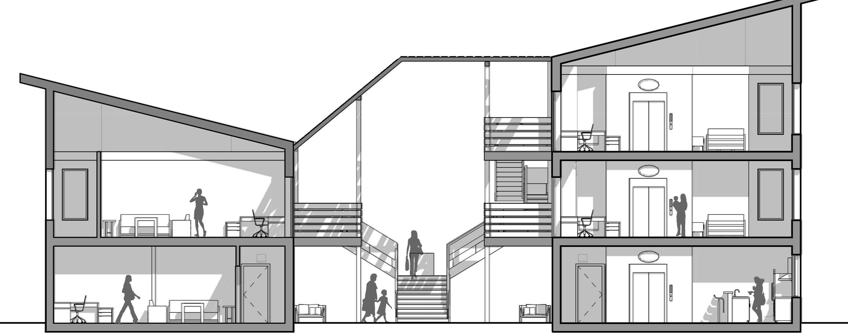 The residential portion of Generation C offers the most innovative aspect of the site. Through extensive research in both Multi-generational households and co-housing communities, the concept of multi-generational, co-housing living pods will be implemented. The pods are arranged in a way that include two forms of residential buildings and shared facilities that surround central, shared outdoor programs.