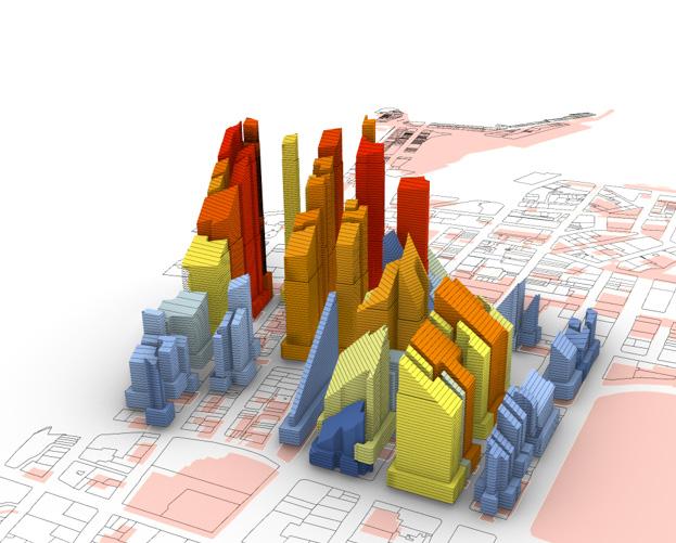 Our TTW CBD Planning Platform identifies sites or amalgamation of sites with high commercial viability. The tool uses large amounts of data and applies local development controls to generate potential building envelopes. This functionality is used to identify multiple site configurations that benefit from changes in planning controls or that fulfill parameters relevant to the client.