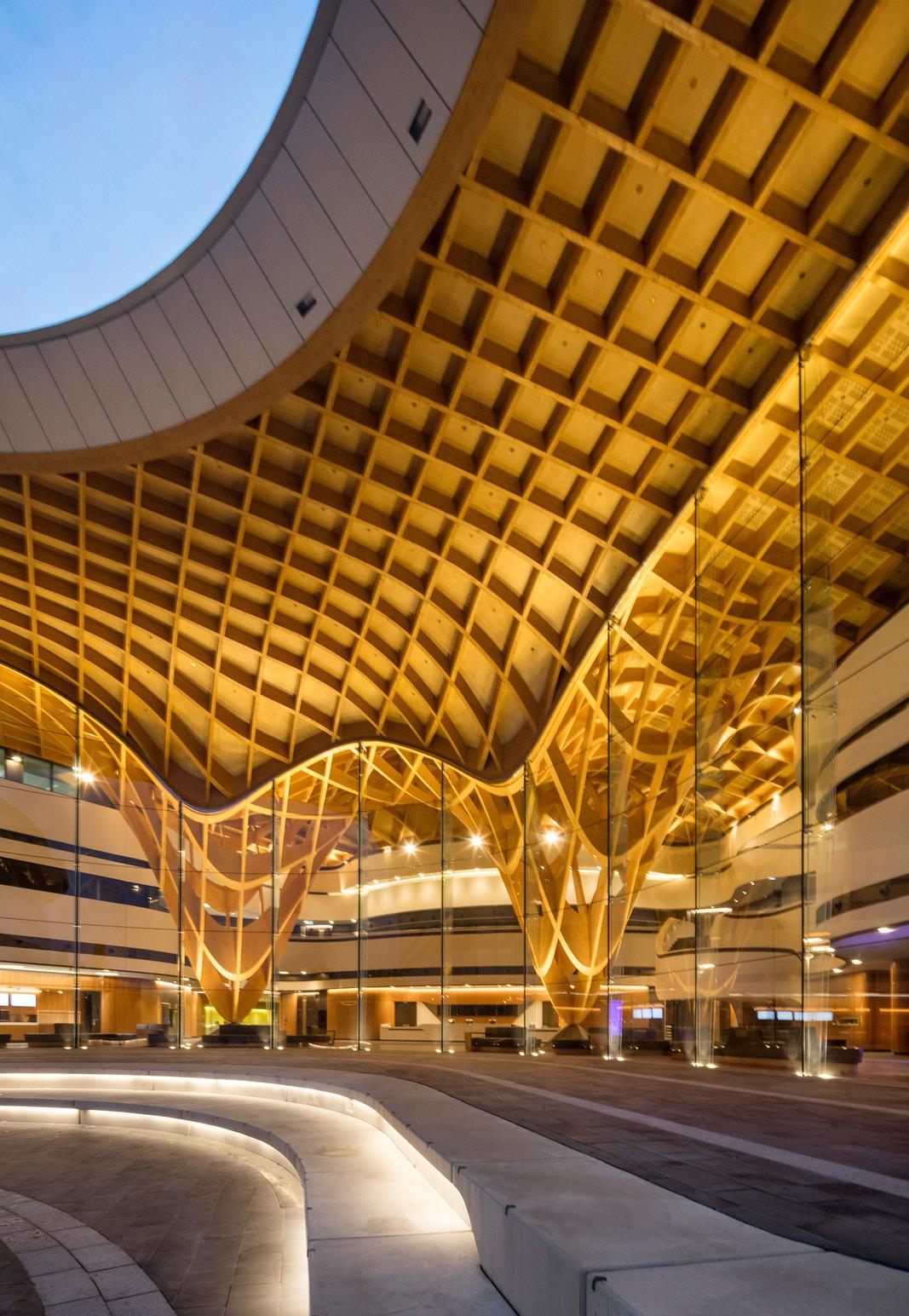 Bunjil Place Award-winning complex timber gridshell, the first of its kind seen in Australia