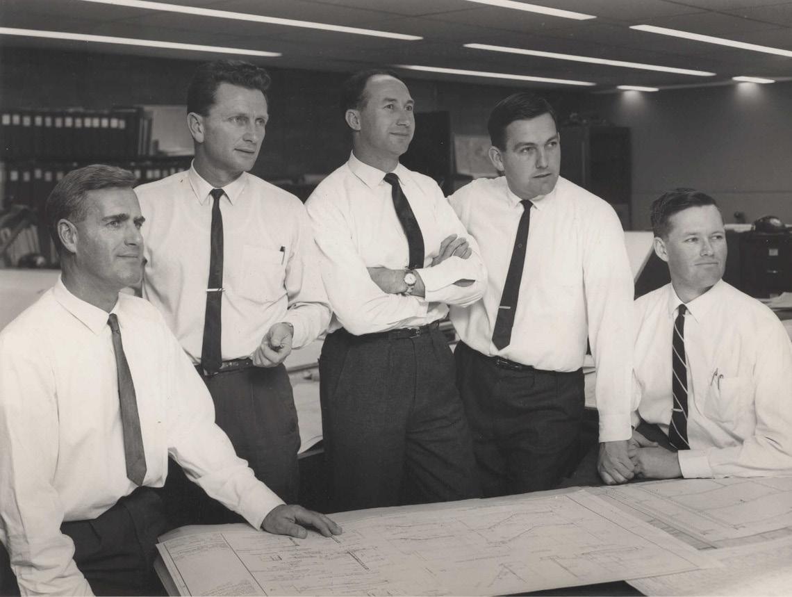 Below Founding partners Dick Taylor, Alan Whitting, Jock Thomson, Denis Pearson and Geoff Markham.