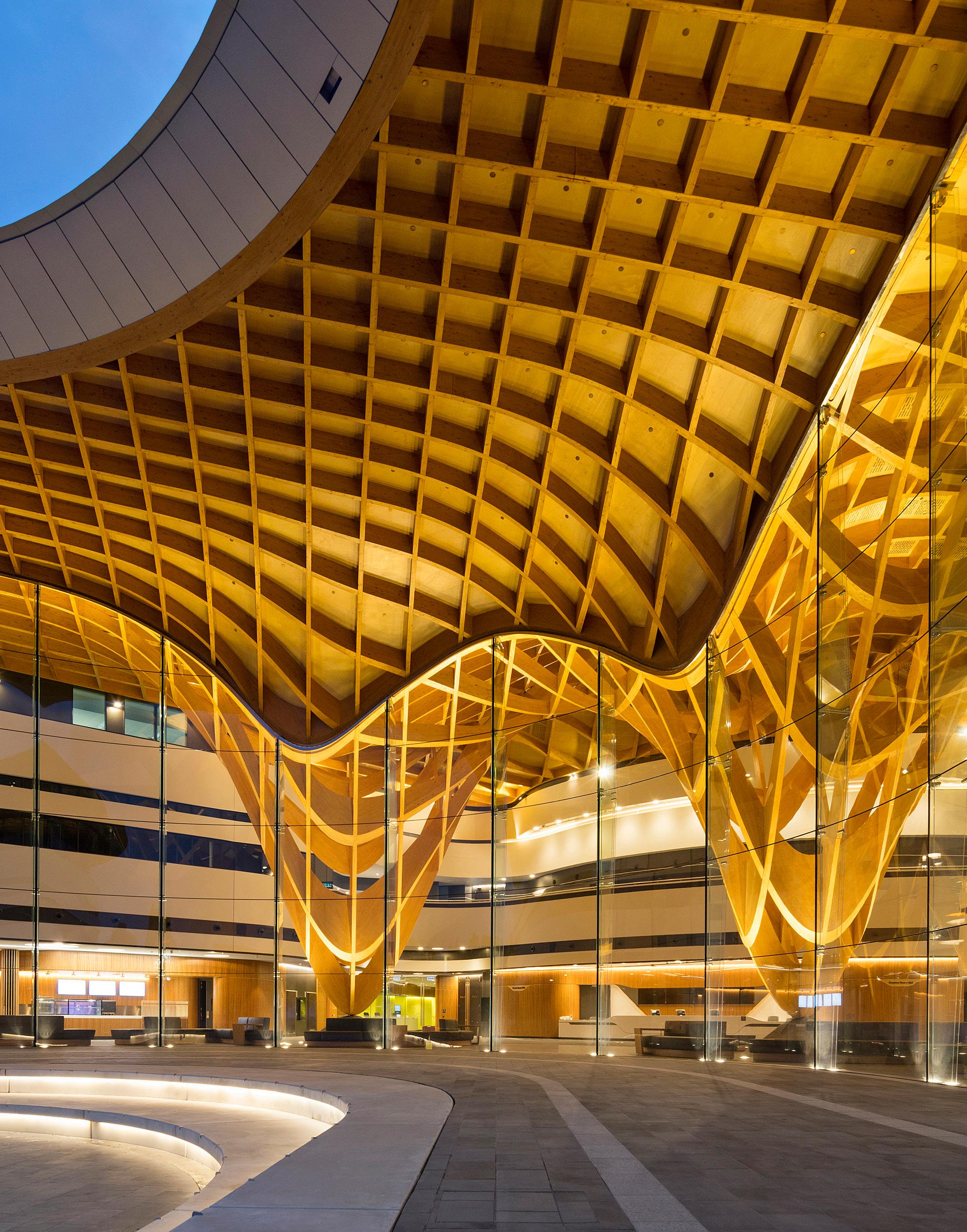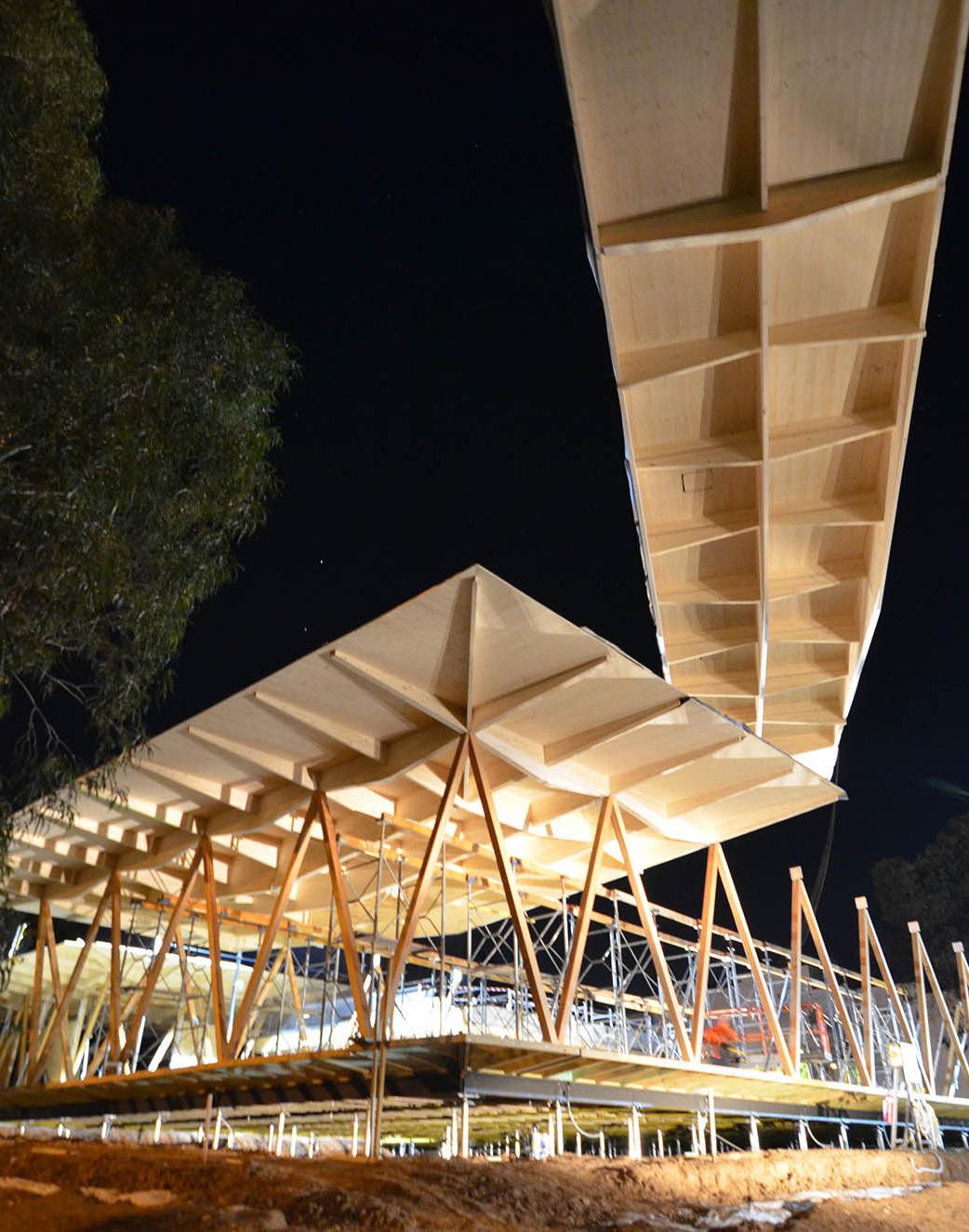 Multi-award-winning complex timber gridshell \ Bunjil Place involved intricate design challenges and delivery to demanding timeframes.