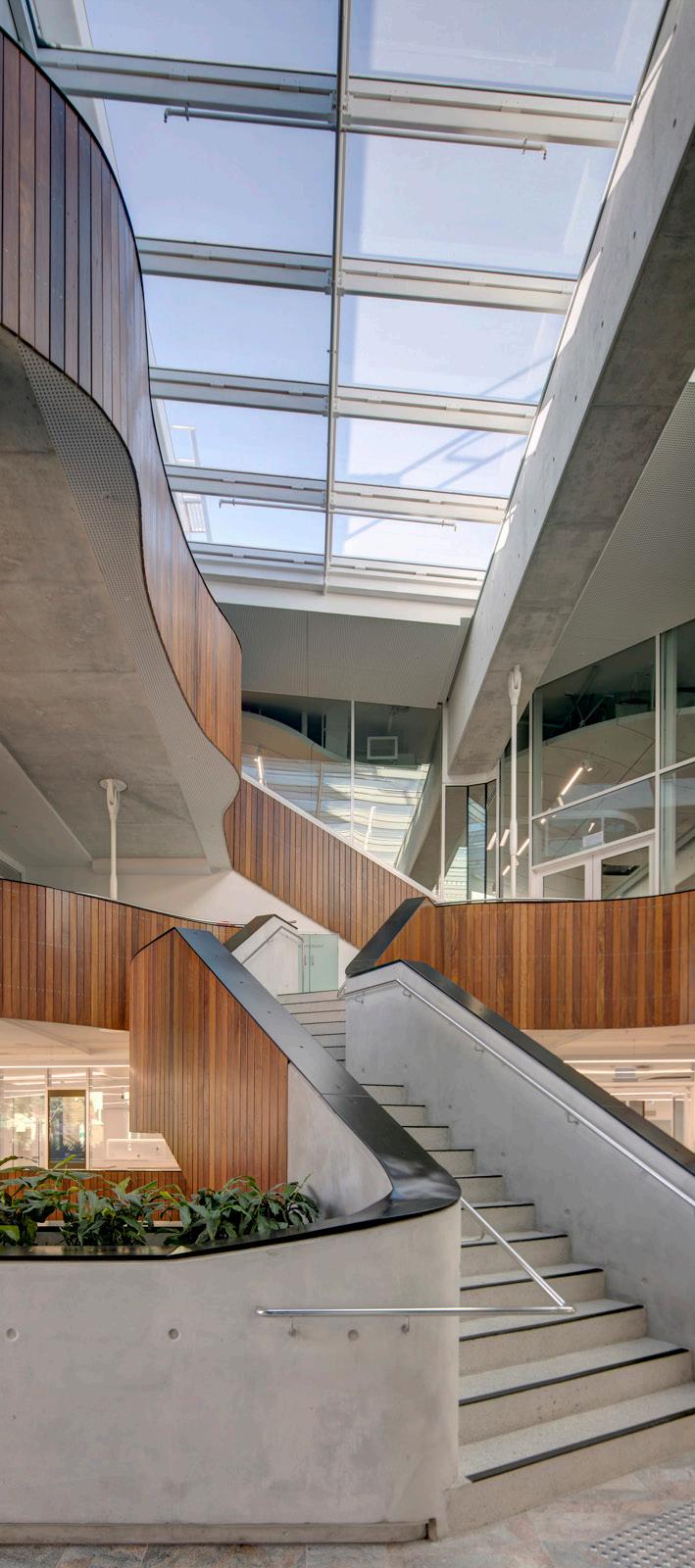 The building walls, stairs and atrium ramps were designed as precast to eliminate complex temporary works and streamline the construction program.