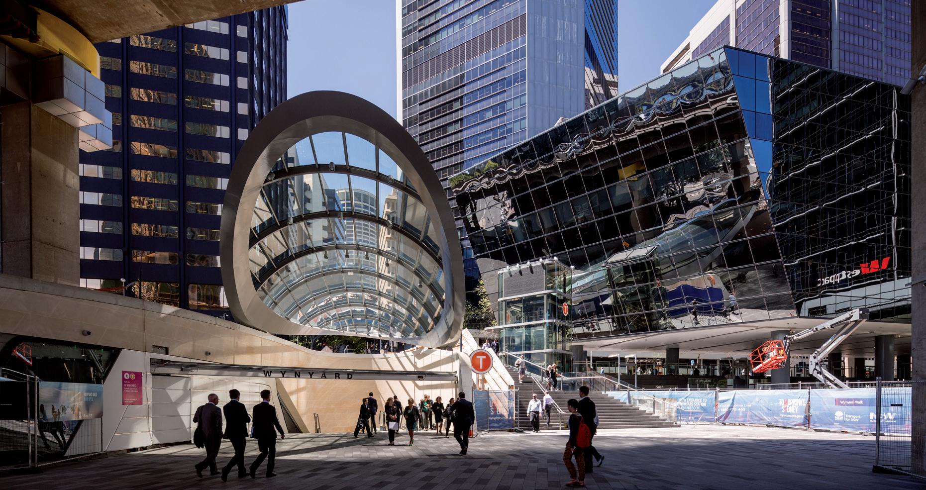Wynyard Walk is a major transport infrastructure designed to provide pedestrians with a safe and efficient method of movement between Wynyard Train Station and the expanding areas of the Barangaroo waterfront precinct and Sydney CBD western corridor. Wynyard Walk consists of a new civic entry building for Wynyard Station, a 180 metre pedestrian tunnel (110 metre of driven tunnel plus 70 metre cut and cover), a western tunnel portal, plaza and a bridge spanning Sussex Street.