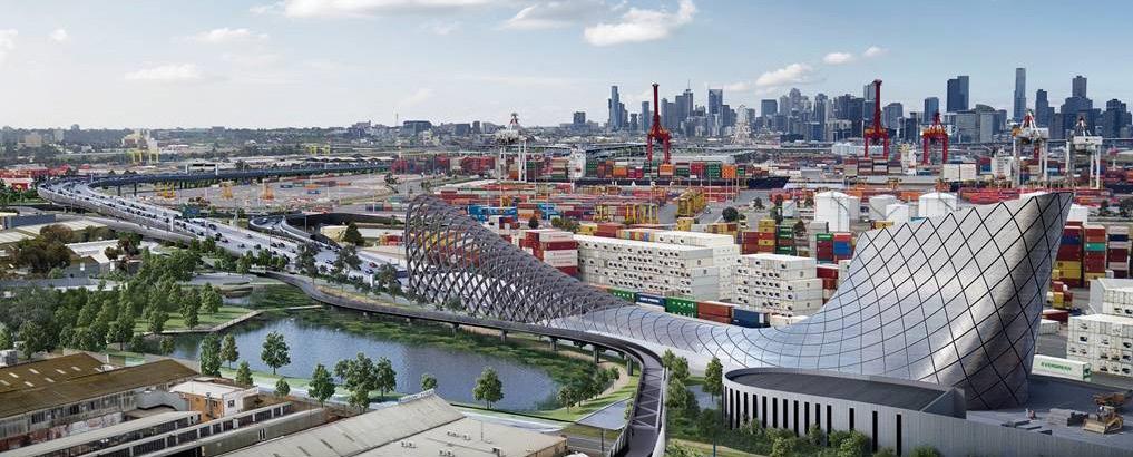 West Gate Tunnel Project \ A landmark timber gridshell and aluminium clad steel diagrid vent structures over freeway tunnel portal visualised by our Digital Engineering team.