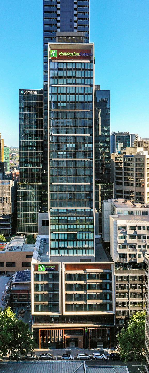 Situated less than a block from Melbourne’s biggest transport hub, this 33-level building offers 300 hotel rooms, 4,200 sqm of commercial office space, ground floor retail and four basement levels of parking.