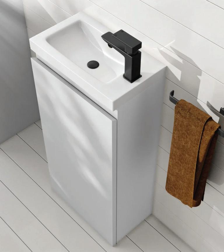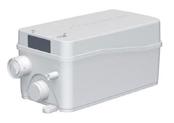 D-2: Small, compact automatic lifting station suitable for pumping grey wastewater. It is possible to install SOLOLIFT2 D-2 underneath or next to the cabinet shower or washbasin.