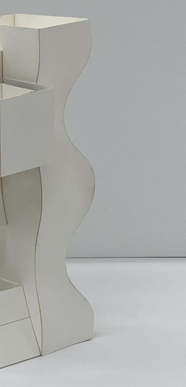 I began with a flat shape, scoring out sections to transform it into a 3D structure. The pieces are assembled by gluing them together, and through repetition, each added layer expands and develop the form.