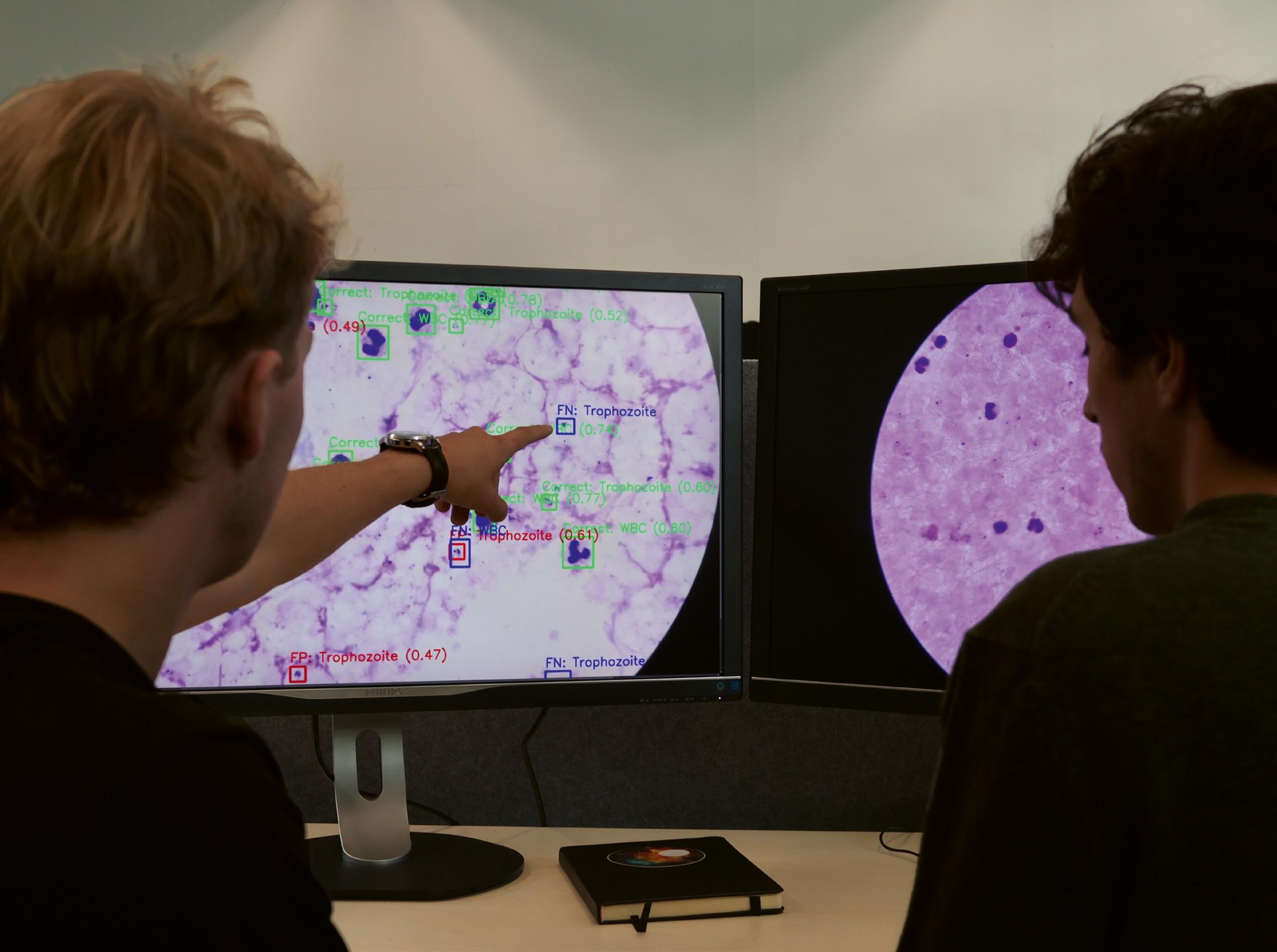 An AI model could make a valuable contribution by identifying the malaria parasite at an early stage. That’s why the team is training an AI model to recognise infected cells based on a dataset of 3,000 photos of blood samples from Uganda (pictured above).