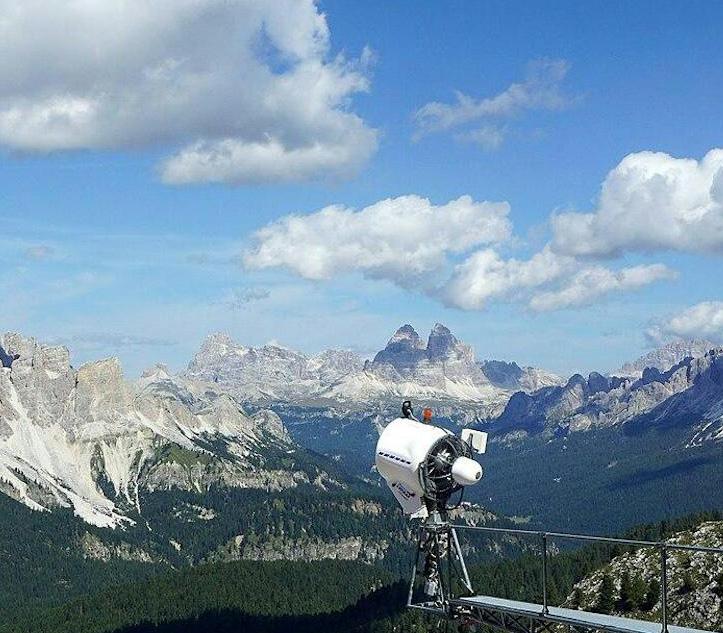 A snow cannon is pictured in front of Mount Faloria in Cortina d’Ampezzo, Italy.
