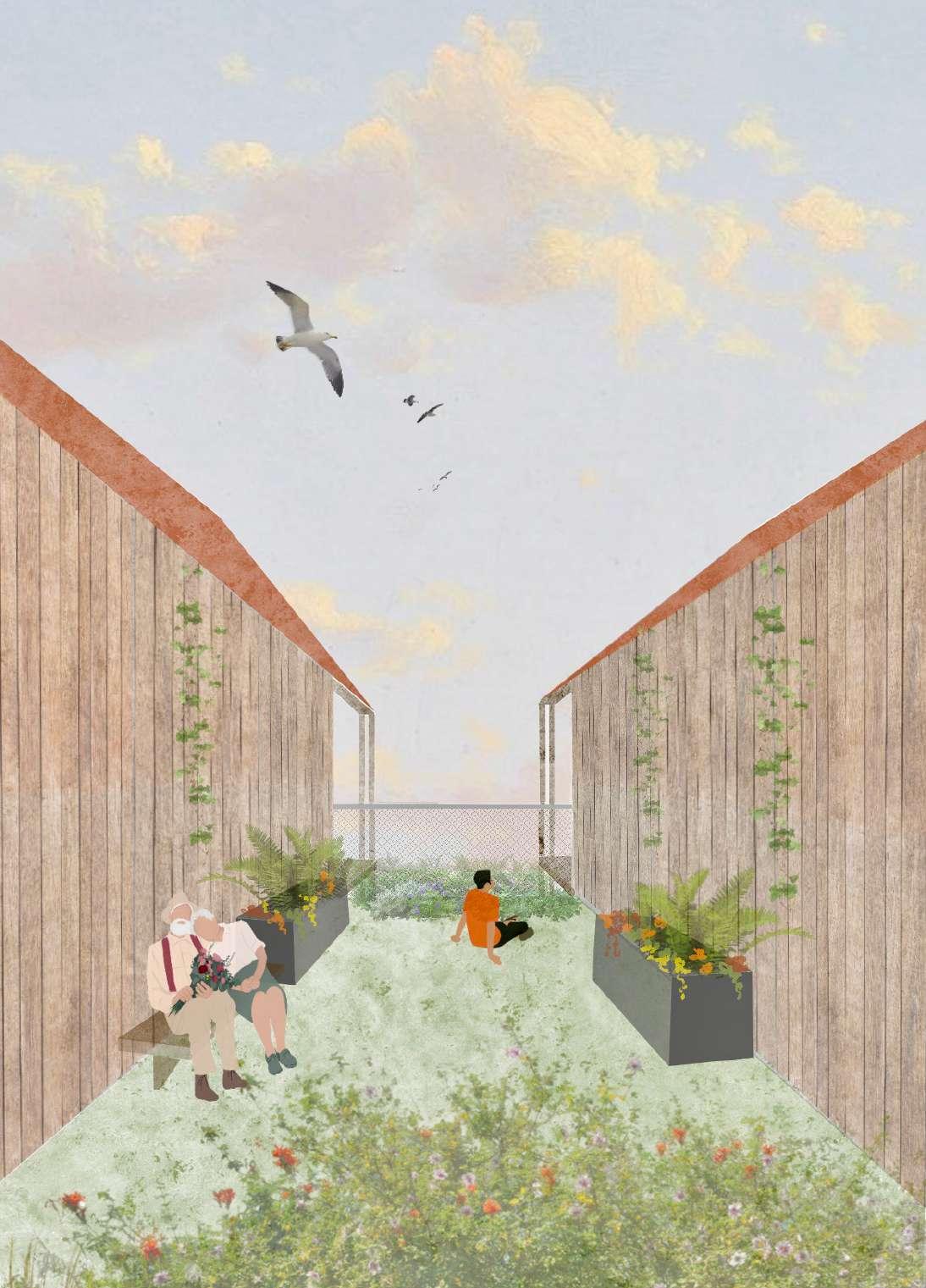 One particular block will serve as an example, bordering the city’s seafront and the main shopping street. Elevated by one storey, it will give free rein to nature and enhance the site with its lightness and adaptability.