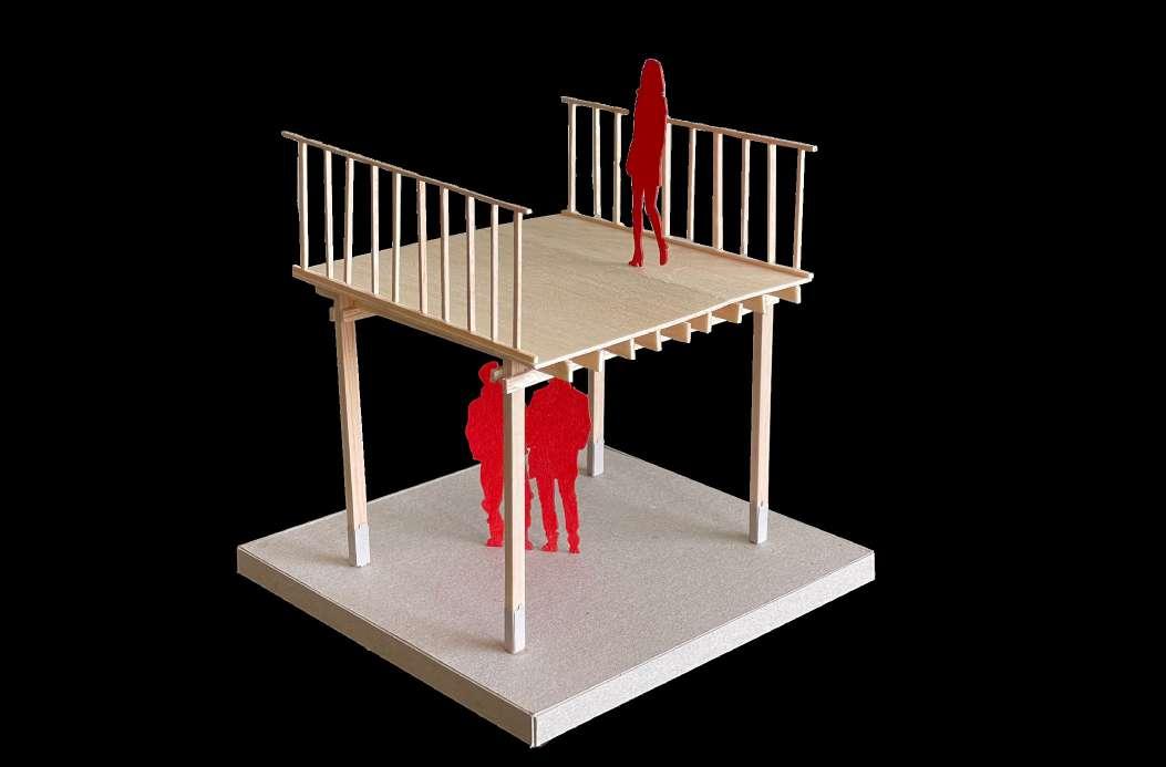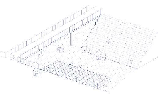 Under the platform - containers for art Under the platform - bleachers, open-air show
