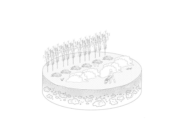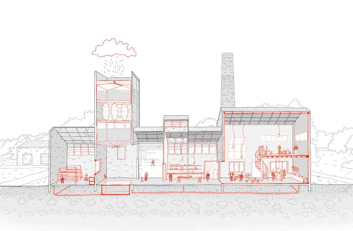 The idea is to study methods that exploit waste and resources from the bioregion as raw materials for the growth of mushrooms, and more specifically mushroom mycelium, to make building materials, thereby offering a concrete response to the environmental impact of this type of industrial legacy while promoting a more responsible approach to construction.