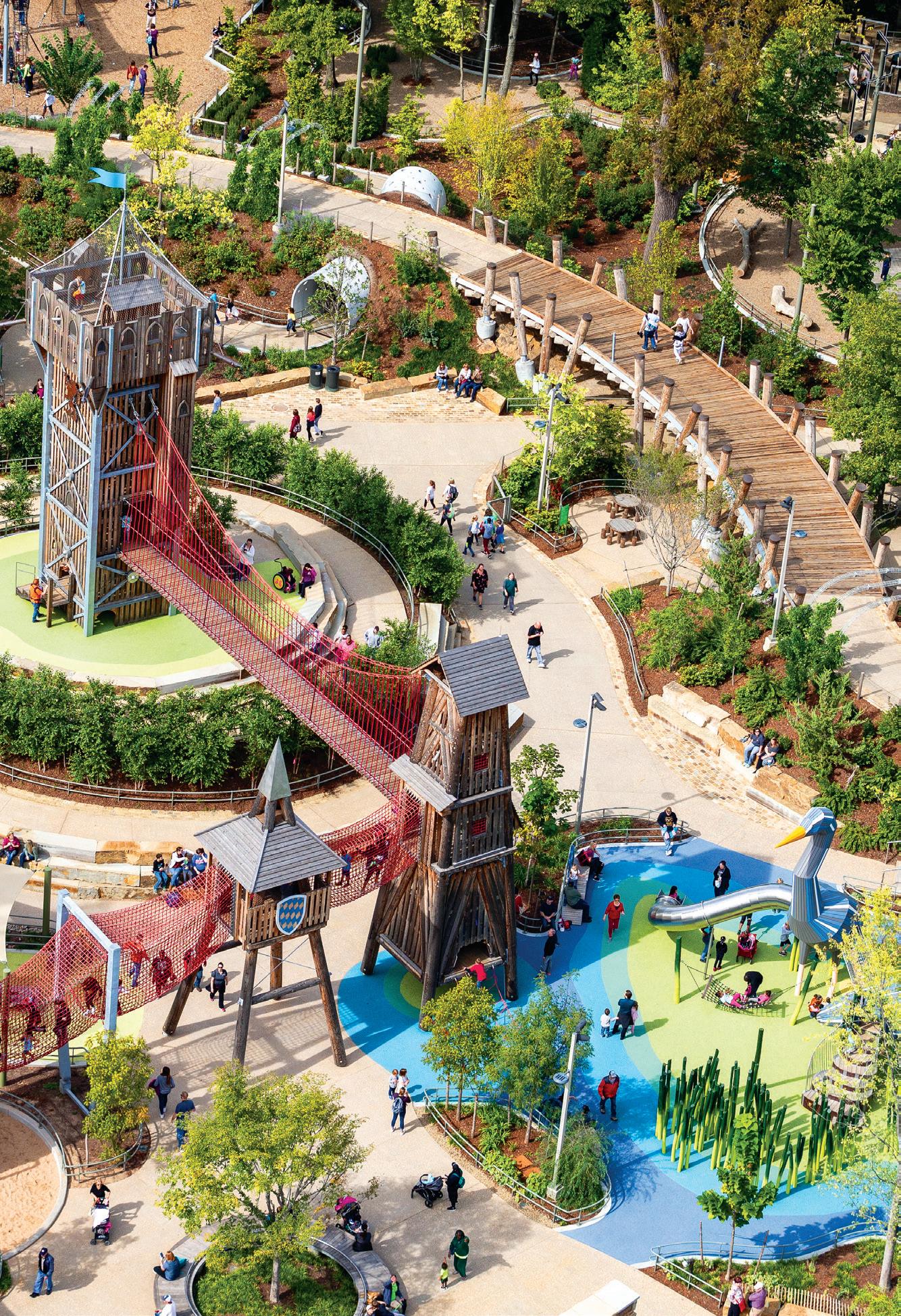 The City of Tulsa has 135 parks and six community centers for ample recreational opportunities. Between Memorial Day and Labor Day, children can cool o in one of the many swimming pools, free splash pads and water playgrounds scattered throughout the city. Find a city park near you using the City of Tulsa’s Parks Finder at maps.cityoftulsa.org/parksfinder. Walkers, runners and cyclists will find plenty of trails and paved paths throughout Tulsa RiverParks’ 800 acres of land stretching along the Arkansas River. Visit riverparks.org for a map of trails.