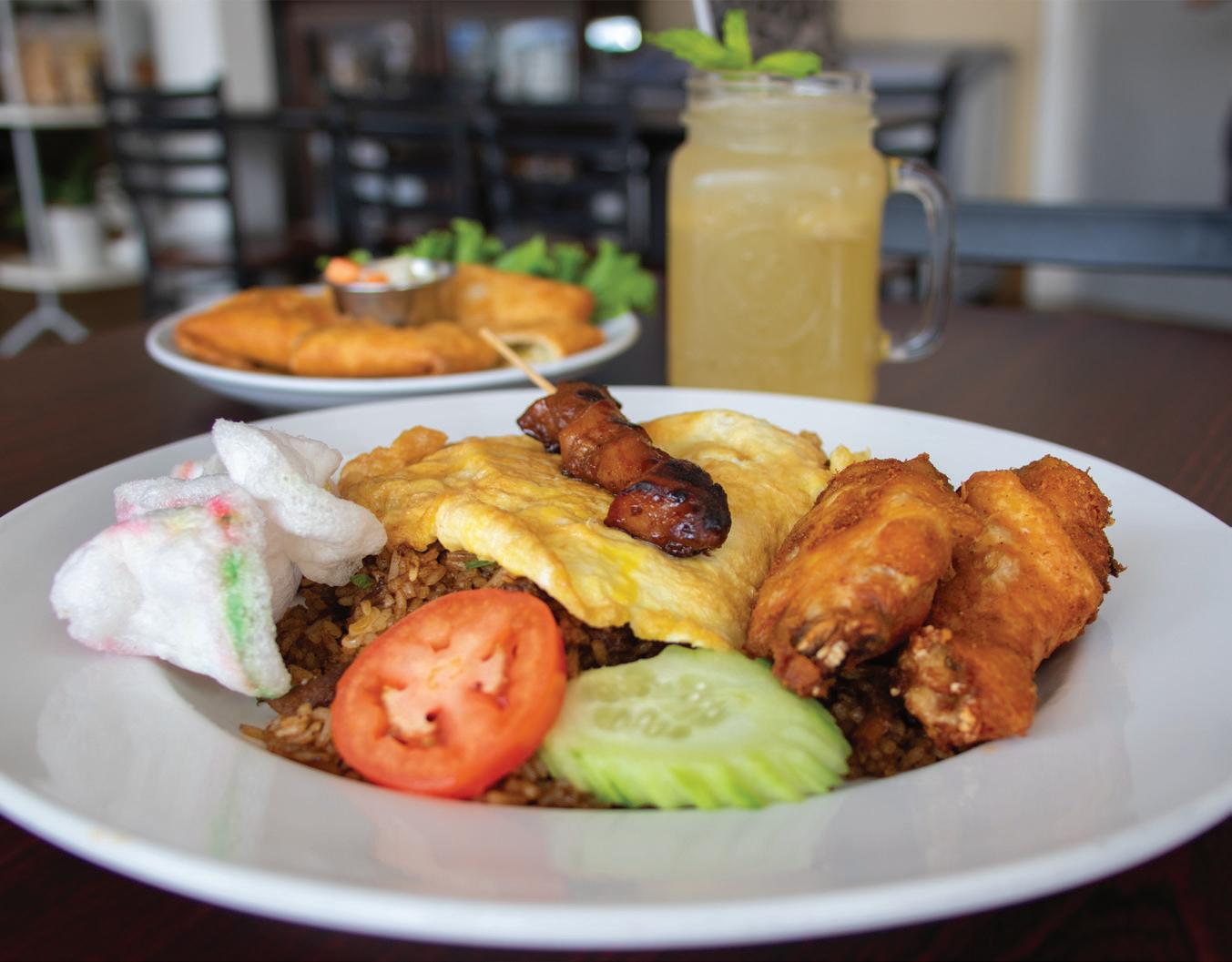 Other popular o erings include Sate (chicken or lamb that is seasoned, skewered and grilled chicken with peanut sauce), Nasi Goreng, a staple of Indonesian cuisine (fried rice with egg, vegetables and your choice of protein or tofu) and Gado-Gado (a salad of mixed steamed vegetables, hard-boiled egg and fried tofu tossed with peanut sauce dressing).