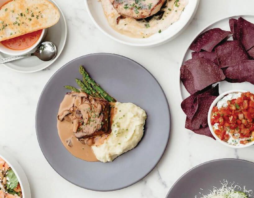 unveil their market — with fresh juices, smoothies, to-go meals and breakfast items. e current menu o ers the same healthy food and drink options as the Brookside location, along with elevated classics and comfort foods; both Pure restaurants o er a combination of items such as power bowls, clean enchiladas and salads, in addition to comfort staples like lets, chicken and dumplings, beef Bolognese and sandwiches.