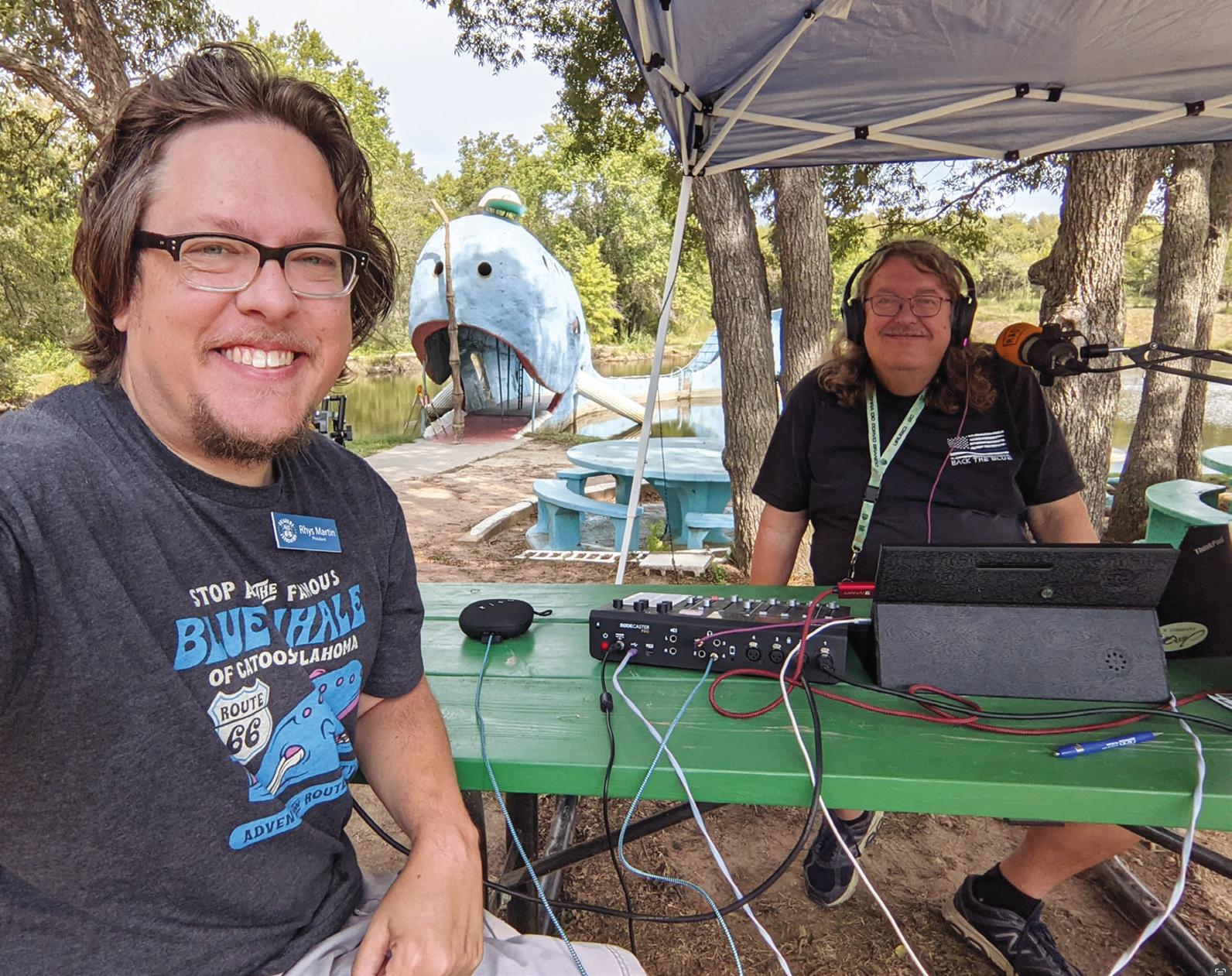 Rhys Martin at the Blue Whale of Catoosa (2600 OK-66, Catoosa) in September 2021 doing a live interview with Zdeněk Jurásek, president of the Czech Route 66 Association, for Jurásek's "Radio 66" program.