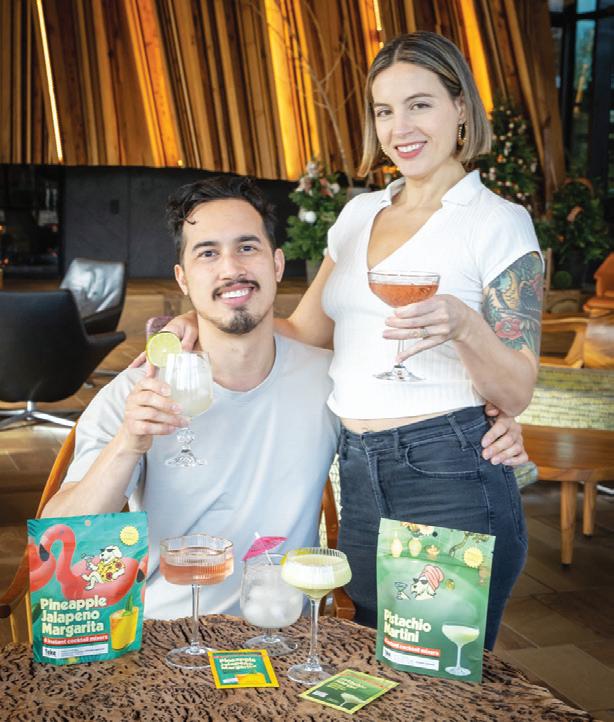 “We really work hard to try to find interesting flavors and ideas and spins on it,” Jillian says, noting flavors include Pineapple Jalapeño Margarita and Pistachio Martini. In December they also released Stardust Spritz, a pink, cherry-based mixer with high-quality edible glitter to ring in the new year.