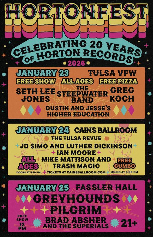 Celebrating 20 years of Horton Records, Hortonfest returns again to Cain’s Ballroom this year with an all-star lineup of Tulsa musicians like John Fullbright , Paul Benjaman, Jesse Aycock , Jacob Tovar and more. cainsballroom.com