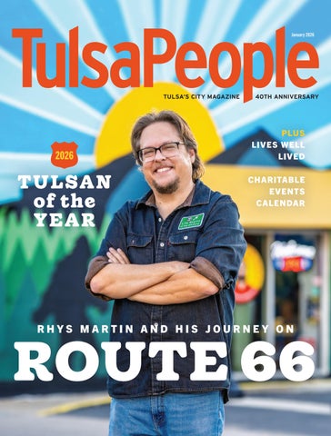 Our January issue of the magazine is always a special one because we annually name a Tulsan of the Year, a practice we began in 1999. Our Tulsan of the Year for 2026 — as you see on the cover — is Rhys Martin , for his 10-plus years of devotion to uplifting Route 66. His e orts, largely carried out as a volunteer with organizations including the Oklahoma Route 66 Association and Tulsa Route 66 Commission, helped lay the foundation for our city’s upcoming celebrations of the Mother Road’s centennial this year. Additionally, over the last decade Martin has met with travelers and journalists from around the world to share the story of this historic highway, inspiring new and repeat visitation to one of our state’s most valuable tourism assets. As tourism is Oklahoma’s third largest industry, Martin’s involvement has been instrumental in supporting jobs and sustaining the signi cant economic impact Route 66 travel has on our state.