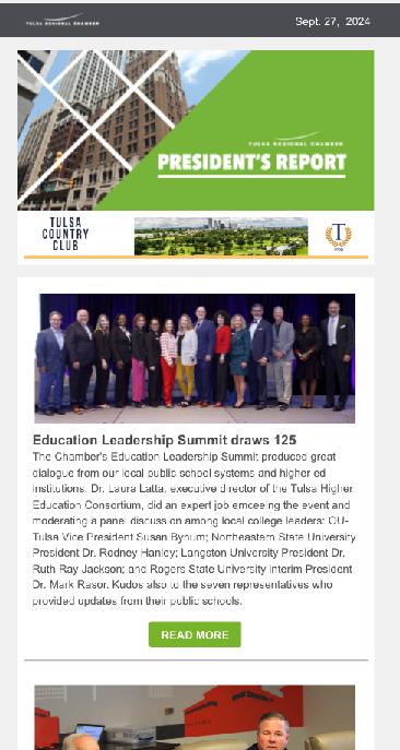 Sponsorship of President’s Report is ideal for companies looking for brand recognition among top business leaders across the region. President’s Report is emailed monthly from January to December.