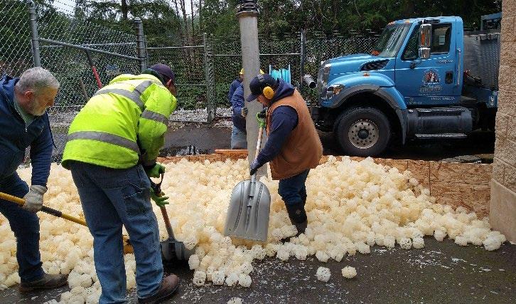 Photo 2: WRS Operations built a berm to catch the old media and used the vactor truck to help collect them for disposal.