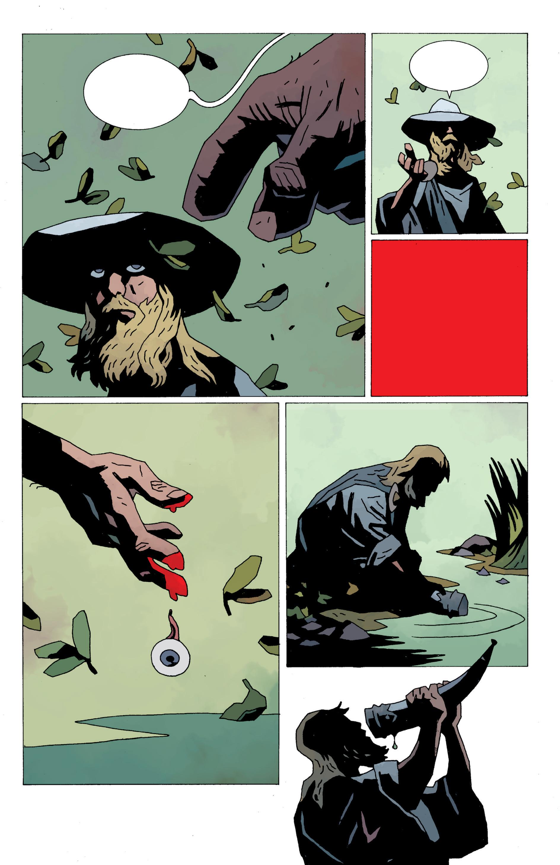 MiSE L’OCCHiO NELLO STAGNO Di MiMiR… … RiEMPì iL GjaLLerhorn CON L’ACQUA… … LA BEVVE FiNO iN FONDO.DiVENNE CONOSCiUTO COME BLiNDR, COME HOARR, iL GUERCiO, E COME L’OCCHiO FiAMMEGGiANTE.