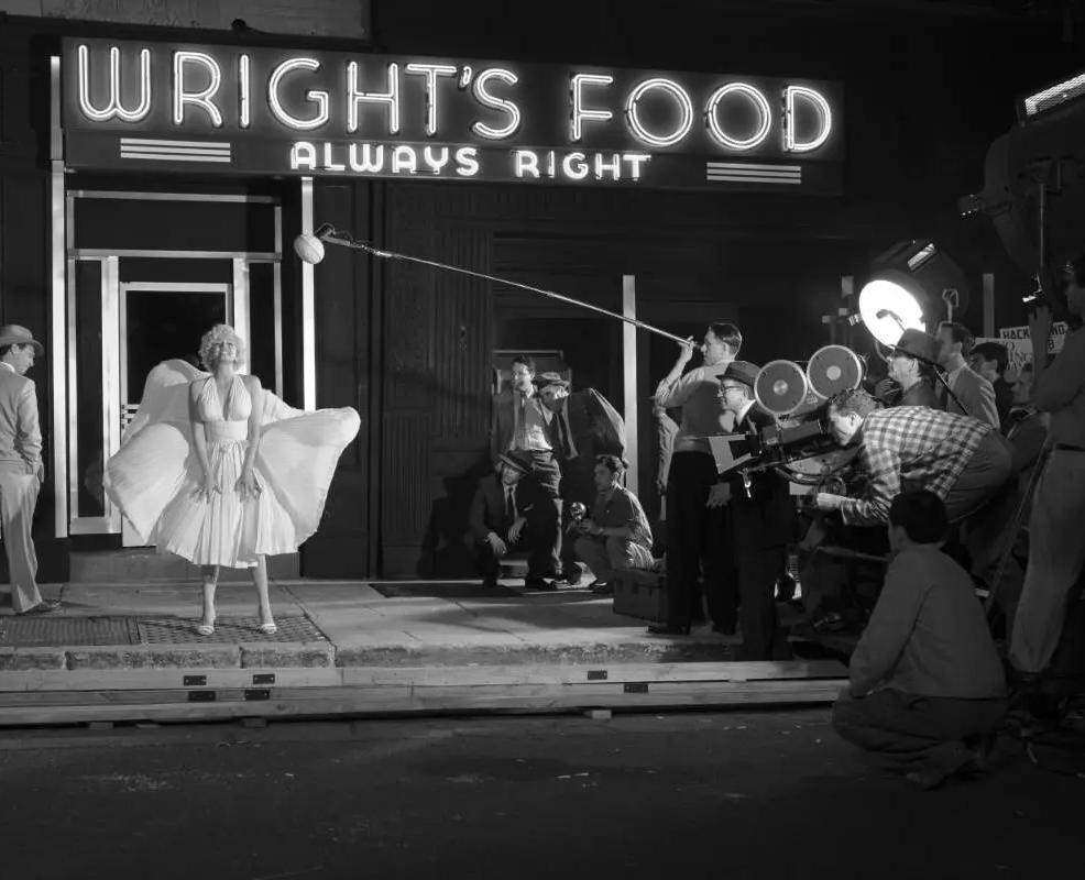 Filmimizdə bir çox şeyləri bədii baxımdan canlandırmaq çətin idi və “Yeddici ilin qaşınması” (“The Seven Year Itch”) filmindəki səhnə də o məqamlardan biridir. Bu səhnədəki ağ paltar filmdəki bütün digər geyimlər kimi mənim rolum üçün yaradılmış tam replikadır. Paltarın orijinal filmdəki kimi çırpınması üçün hava üfürən şəxsin Merilin Monro ilə çəkiliş meydançasında bunu edən işçinin nəvəsi olması gülməlidir. Endryu üçün təkcə bu simvolik səhnəni canlandırmaq deyil, həm də Merilinin özünün perspektivindən çəkərək kimə baxdığını və o anda nə gördüyünü göstərmək çox vacib idi. Bu epizod şöhrət sınağından çox şey deyir. Hər bir aktyorun həyatında elə bir məqam olur ki, ona böyük diqqət düşür. O vaxtdan bəri bu nəinki dəyişməyib, bəlkə də daha da pisləşib. Hər birimizin həyatı şəxsi və ictimai olaraq ikiyə bölünür və bəzən yalnız özünüz üçün saxlamaq istədiklərinizi xarici dünya ilə bölüşməyə hazır olduğunuz arasında tarazlıq tapmaq çox çətindir. Bəzən heç bizdən də asılı olmur. Amma “Sarışın” mənə o vəziyyətə düşən və bunun öhdəsindən gələ bilməyən digər aktyorlara empati qurmağı öyrətdi.