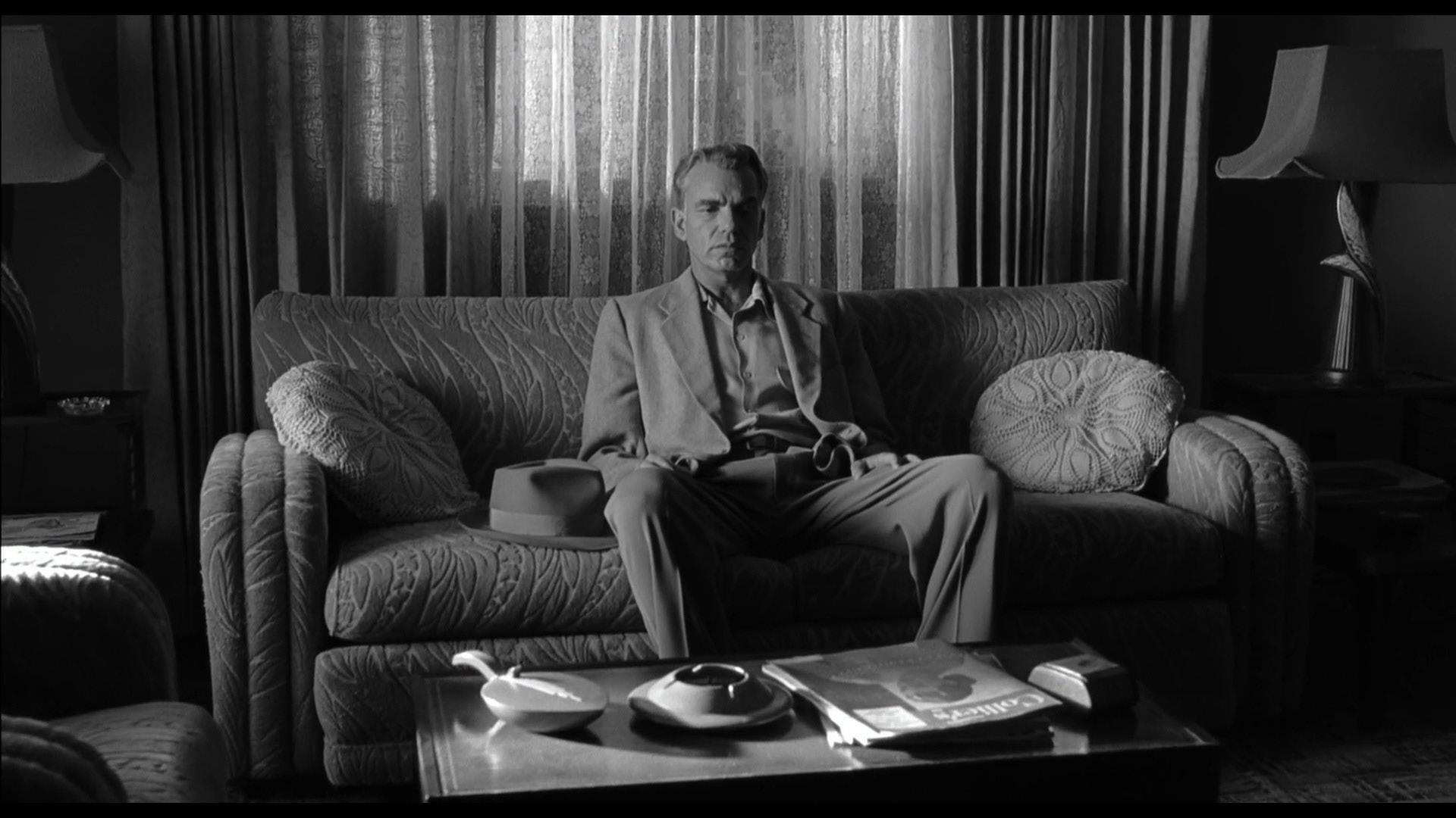 Əvvəl də qeyd etdiyim kimi, filmin baş qəhrəmanı Ed illərdir gördüyü bərbər işindən bezib, həyatının mənasını sorğu-sual etməyə başlayaraq, bir növ ekzistensial böhran yaşayır. Filmin sonlarına doğru artıq bütün planları alt-üst olmuş Ed, mənasını itirmiş həyatına yeni bir məna qazandırmaq üçün ifalarını həvəslə dinlədiyi, qonşuluqdakı gənc pianist qız Bördinin (Skarlet Yohanson) meneceri olmaq kimi bir qərara gəlir. Bəhanə olaraq isə qıza deyir ki, istedadının boşa getməməsi və qızın da onunki kimi oxşar aqibət yaşamaması üçün bunu etmək istəyir. Əslində isə o, bunu daha çox özü üçün, öz həyatını mənalı hala gətirmək üçün etmə arzusunda olur. Ancaq qızı dərslərə yazmaq üçün tanınmış fransız piano müəlliminin yanına aparanda, gözlənilməz bir şey baş verir. Müəllim qızı yoxladıqdan sonra təklikdə Edə qızın çox yaxşı, gənc bir qız olduğunu, lakin istedadsız olduğunu və sənətkar ruhuna sahib olmadığını deyir. Bunu eşidən Edin beləliklə son ümidləri də suya düşür və həyatı artıq tamamilə alt-üst olur. Bu detalı rejissor, onun sürdüyü maşının qəzaya düşərək, aşması kadrları ilə vizual hala gətirir. Qəzadan bir az əvvəl isə Ed, maşında qıza narahat olmamasını, onun üçün başqa müəllimlər tapacağını söyləyir. Artıq Ed, həqiqətin özünün bildiyi kimi olmadığını, və yaxud həqiqəti ümumiyyətlə bilmədiyini dərk etmişdir. Eyni ilə Ann obrazı kimi, o da çarəsizliyə düçar olaraq, özündən alternativ həqiqətlər uydurmağa başlamışdır. Elə bu zaman yuxarıda bəhs etdiyim qəza baş verir. Qəzada maşının göydə fırlanmasını yavaş hərəkətli (slow motion) kadrda görürük. Bu an maşının təkərlərindən birinin yerindən çıxmış diski göydə uçaraq bizə (ekrana) tərəf yaxınlaşır. Təkərin diski yadplanetlilərin uçan gəmisinə (UNO) oxşayır və ekran qaralıb, surreal bir forma alaraq, həmin diski qaranlıqda uçan yerdə göstərir – sanki bu, qaranlıq səmada uçan UNO-dur. Rejissor bu kadr ilə Edin də Annın aqibətini yaşadığını – əsl həqiqətdən qaçdığını və öz həqiqətini uydurduğunu – izləyiciyə çatdırır.