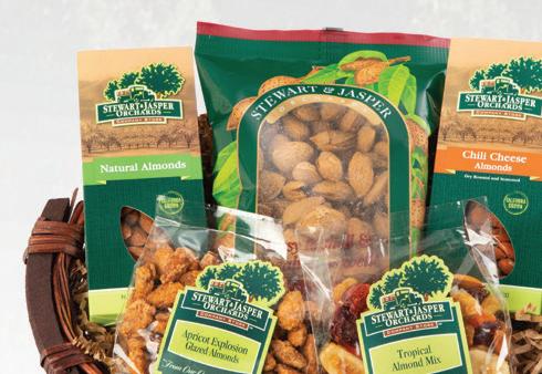 www.StewartandJasper.com • 1-877-ALMOND-8 STANISLAUS COUNTY PROUD A family run business since 1948, located in California’s Central Valley, our philosophy is to give our customers the finest quality products by controlling every aspect of production, from the Orchard to the Marketplace - from the ground up. McHenry Village 1700 McHenry Ave., Suite 58, Modesto, CA 95350 phone: 209-577-NUTS (6887) The Company Store 3500 Shiells Road Newman, CA 95360 phone: 209-862-0555 Del Lago Plaza 2985 Renzo Lane, Suite D Patterson, CA 95363 phone: 209-895-9463 We specialize in gourmet almond products and beautiful gift baskets perfect