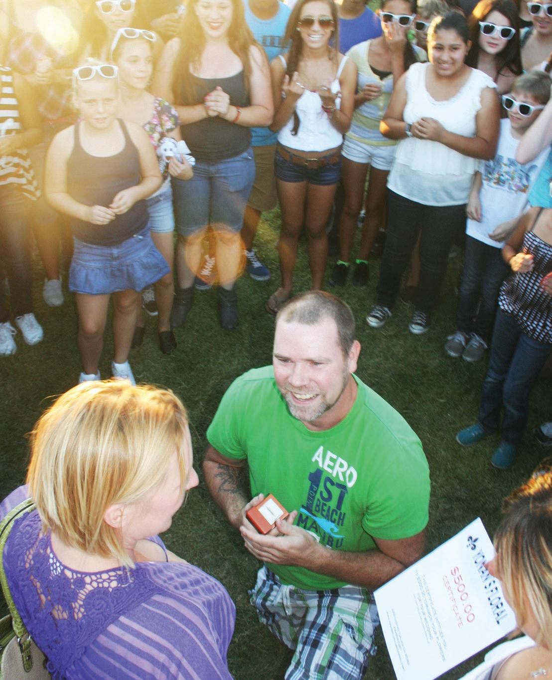 Smiles abounded at the 2012 Stanislaus County Fair opening — especially for fair visitors who saw Mike Munch of Modesto propose to his girlfriend Lorene Novoa in front of hundreds of people, and she never saw it coming.
