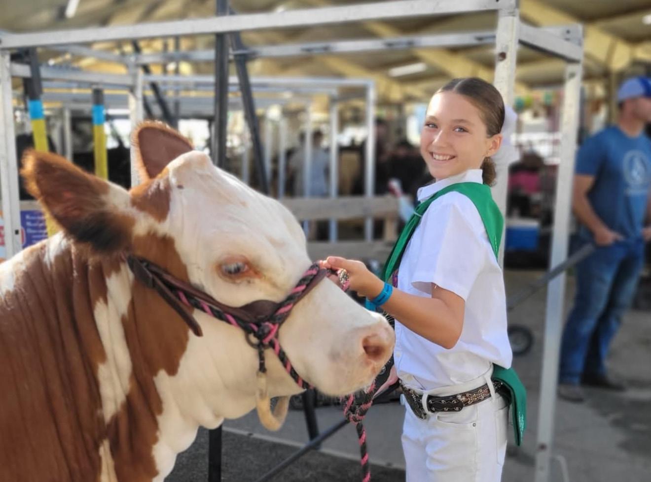 Turlock resident Kacie Taylor, a Westside 4-H member, placed second in her class with her yearling Hereford heifer KD Lollipop at the Merced County Fair.