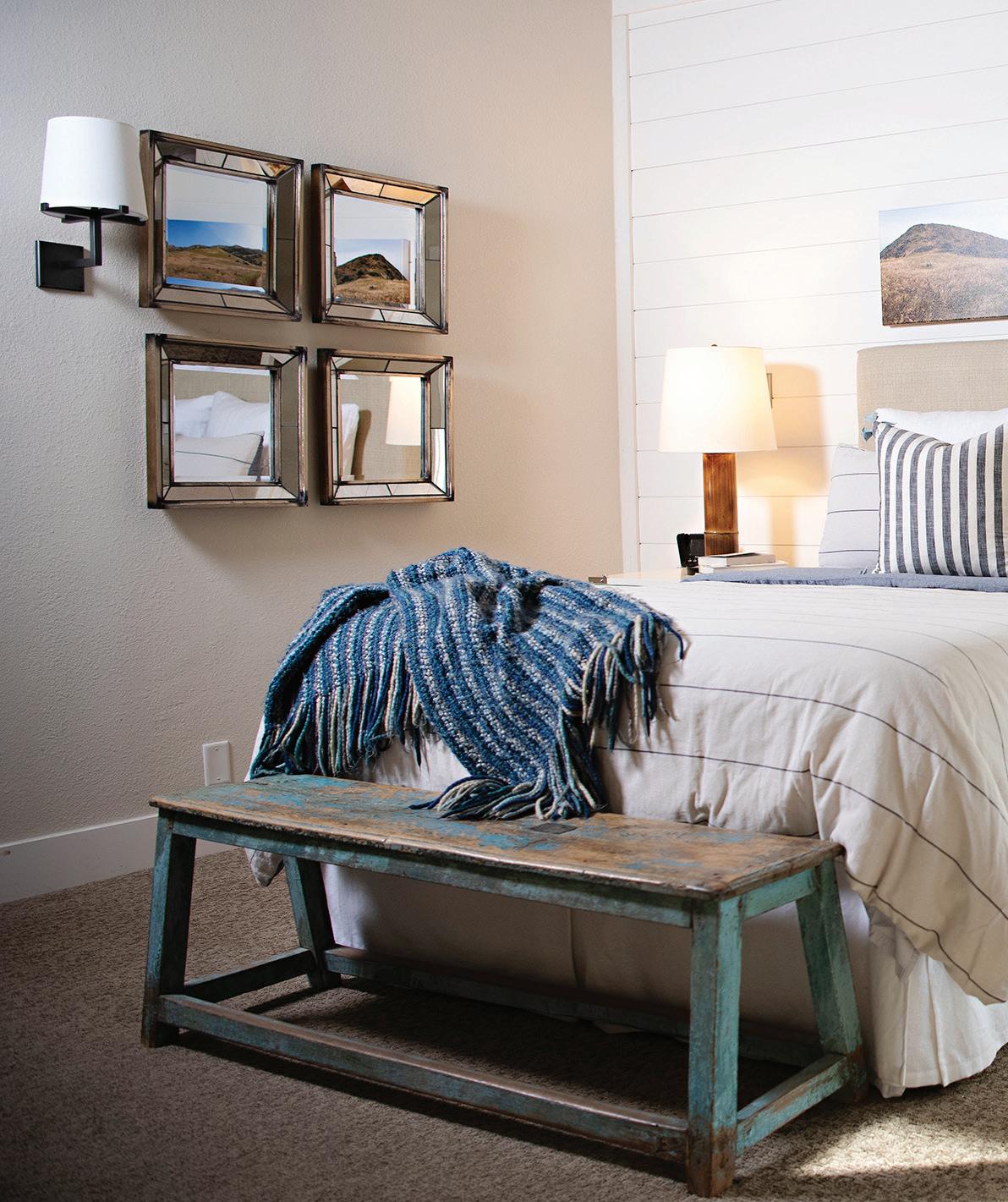 This urban farmhouse is a classic turn-of-thecentury, two-story design with a large front porch, pine oors, and original wood sash windows. The furnishings are simple, exuding the charm and comfort associated with traditional American design.
