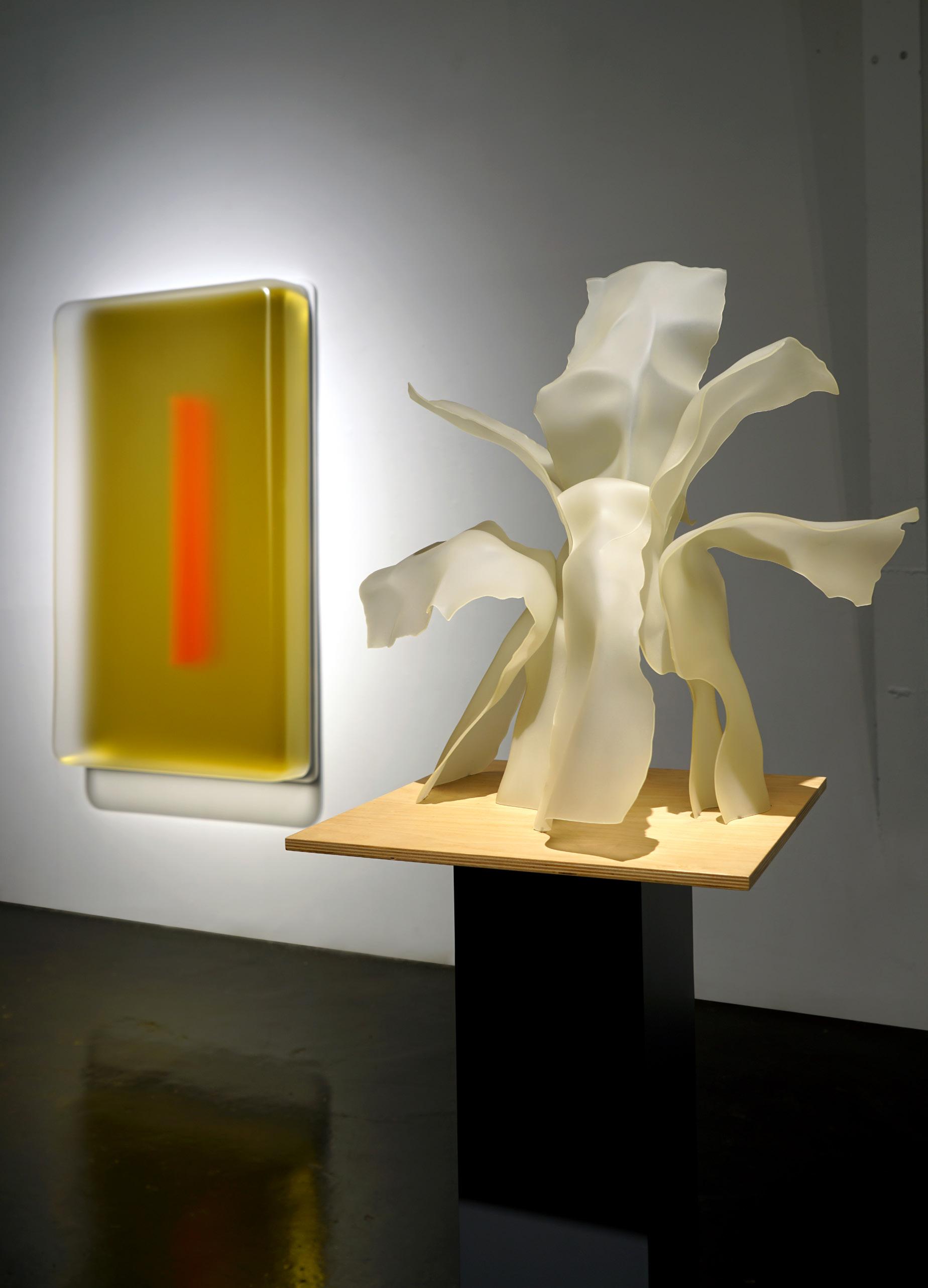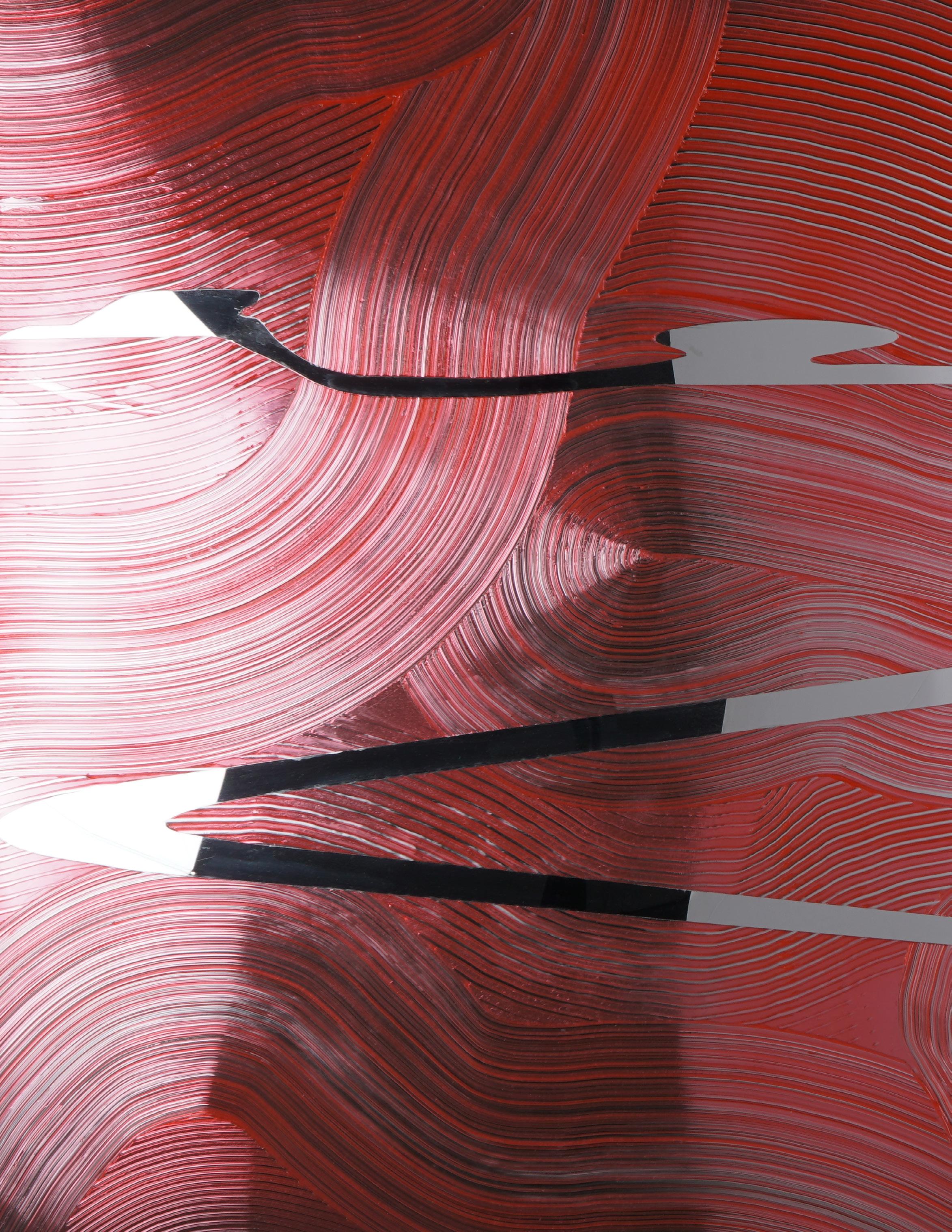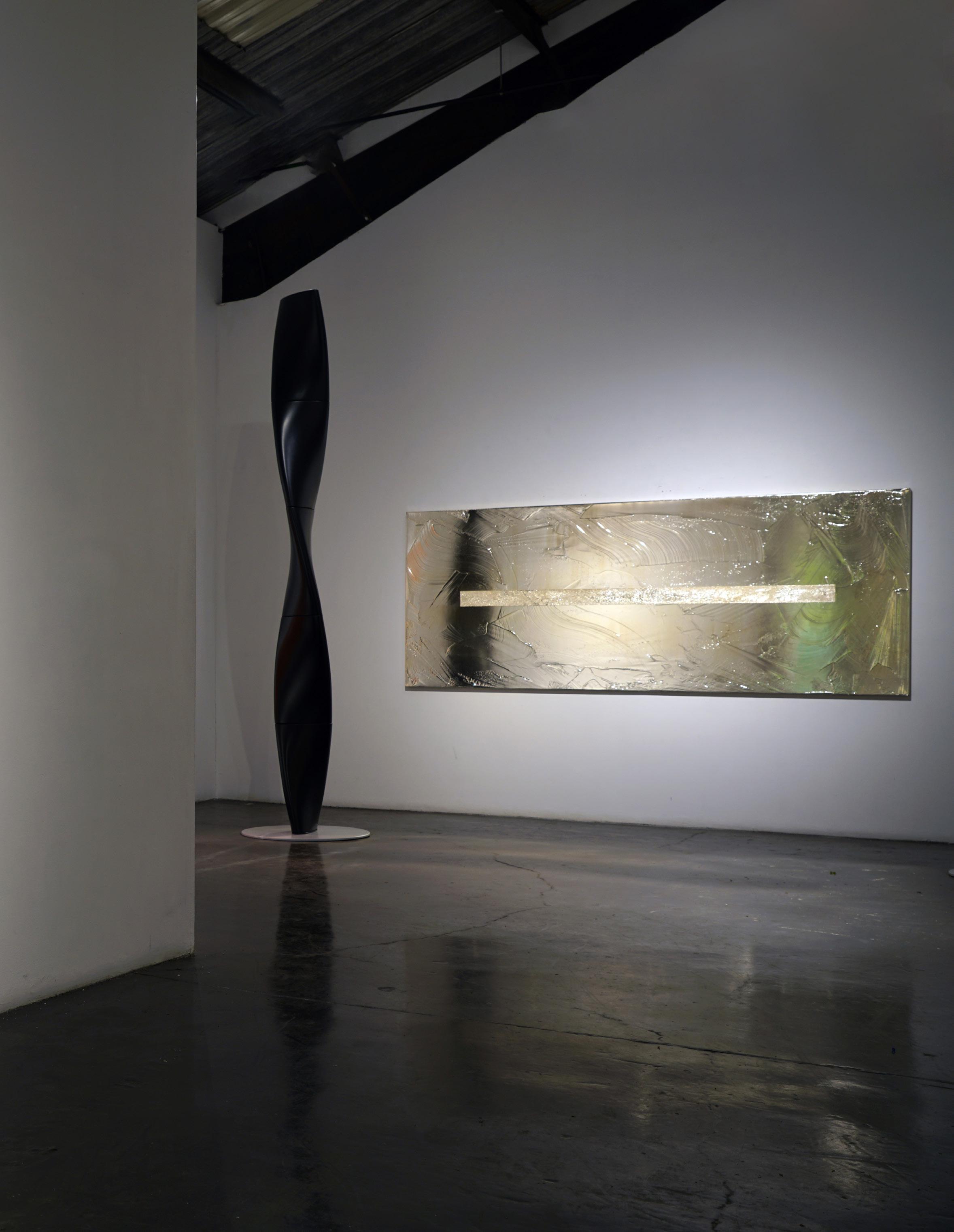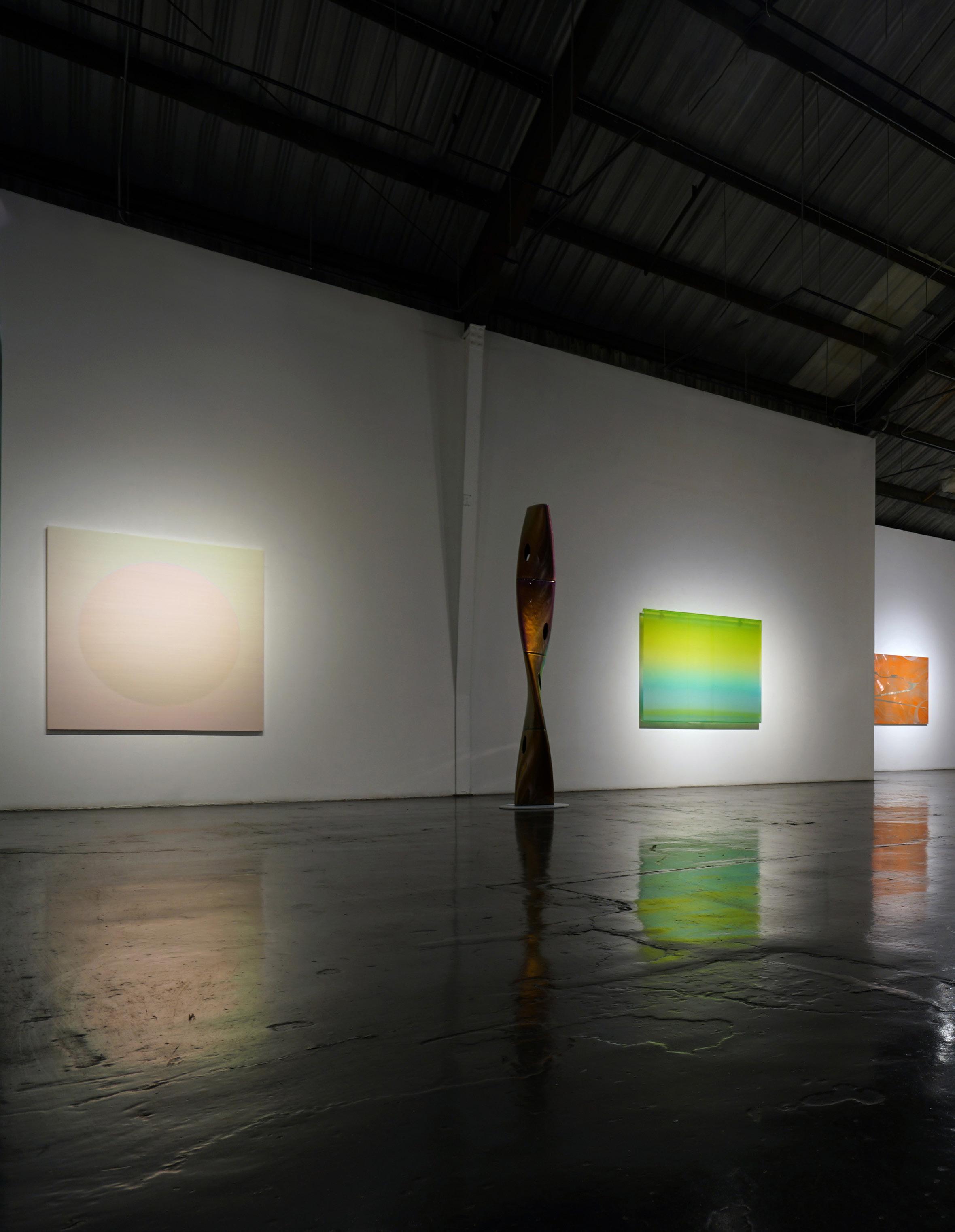 At the nexus of the L.A. art scene for nearly forty years, Eric Johnson’s work bears a distinctly Southern California hot-rod, materials-based aesthetic. Early on, Johnson was drawn to artists whose work also grew out of L.A.’s surf and car culture sensibilities. Utilizing new materials and industrial products, like resin & plastic, artwork of impossibly slick, sleek character began to emerge and was termed “Finish Fetish”. Johnson’s work is next generation heir to this work, and carries forward the DNA of such legendary Light and Space, Finish Fetish, artists as Craig Kaufman, DeWain Valentine, Billy Al Bengston, Larry Bell, Tom Jenkins and Tony DeLap.