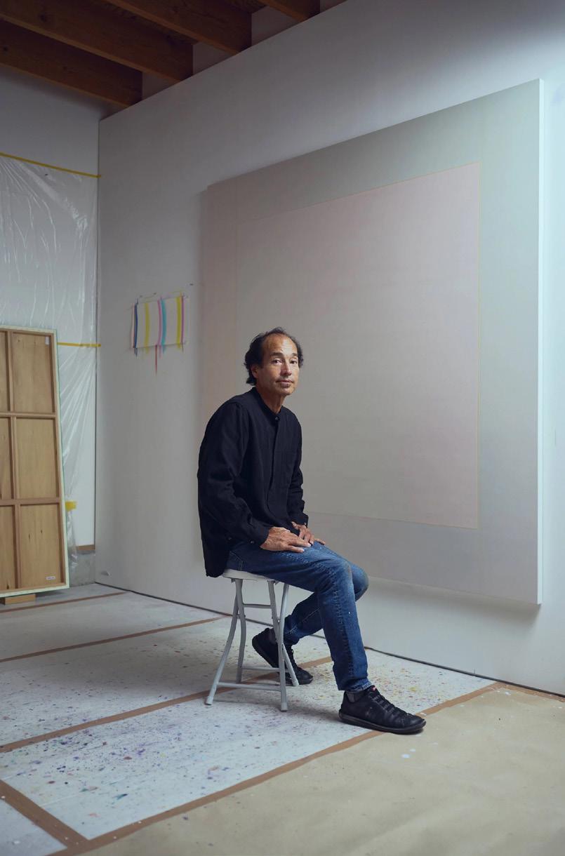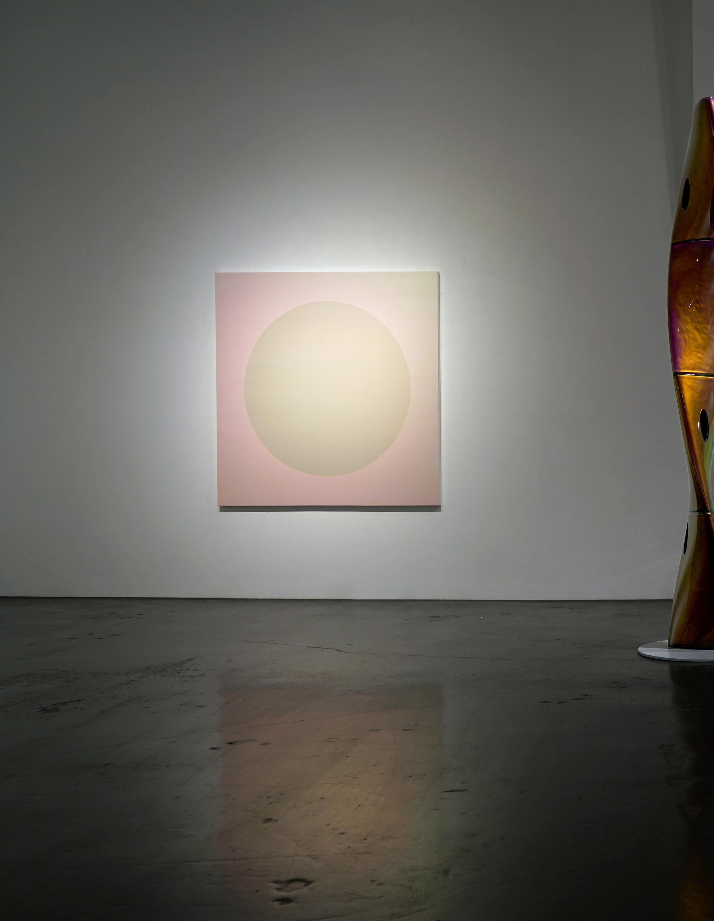 Shingo Francis creates paintings that shimmer and shift through the use of interference pigments that refract light. Influenced by Southern California’s Light and Space movement and his immersion in LA’s art scene, Francis’s works change with viewer position and lighting conditions.
