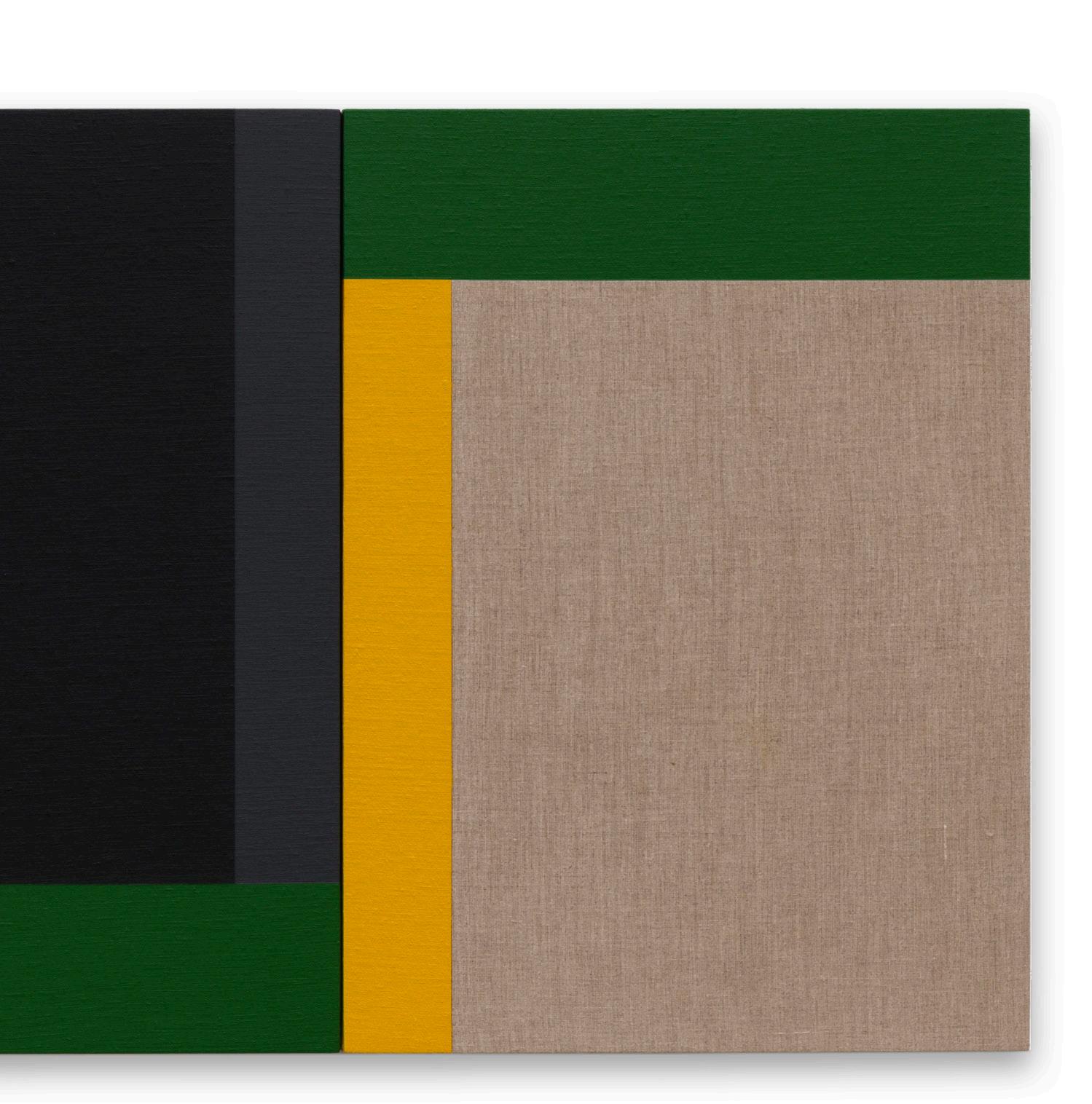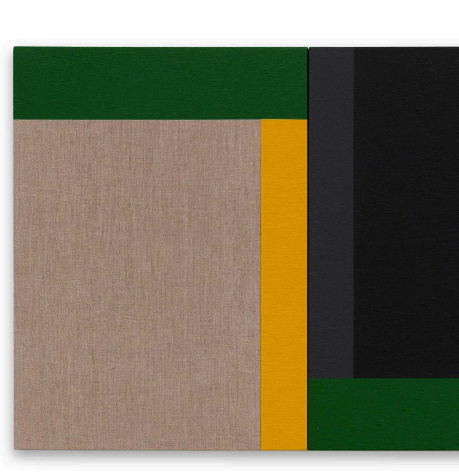 Scot Heywood’s works are indebted to the origins of geometric abstraction. Ranging in scale from intimate to encompassing, his paintings consist of multiple, colored canvases, connected in staggered, patchwork patterns, intentionally misaligned to create delightfully disruptive, staccato visual rhythms.