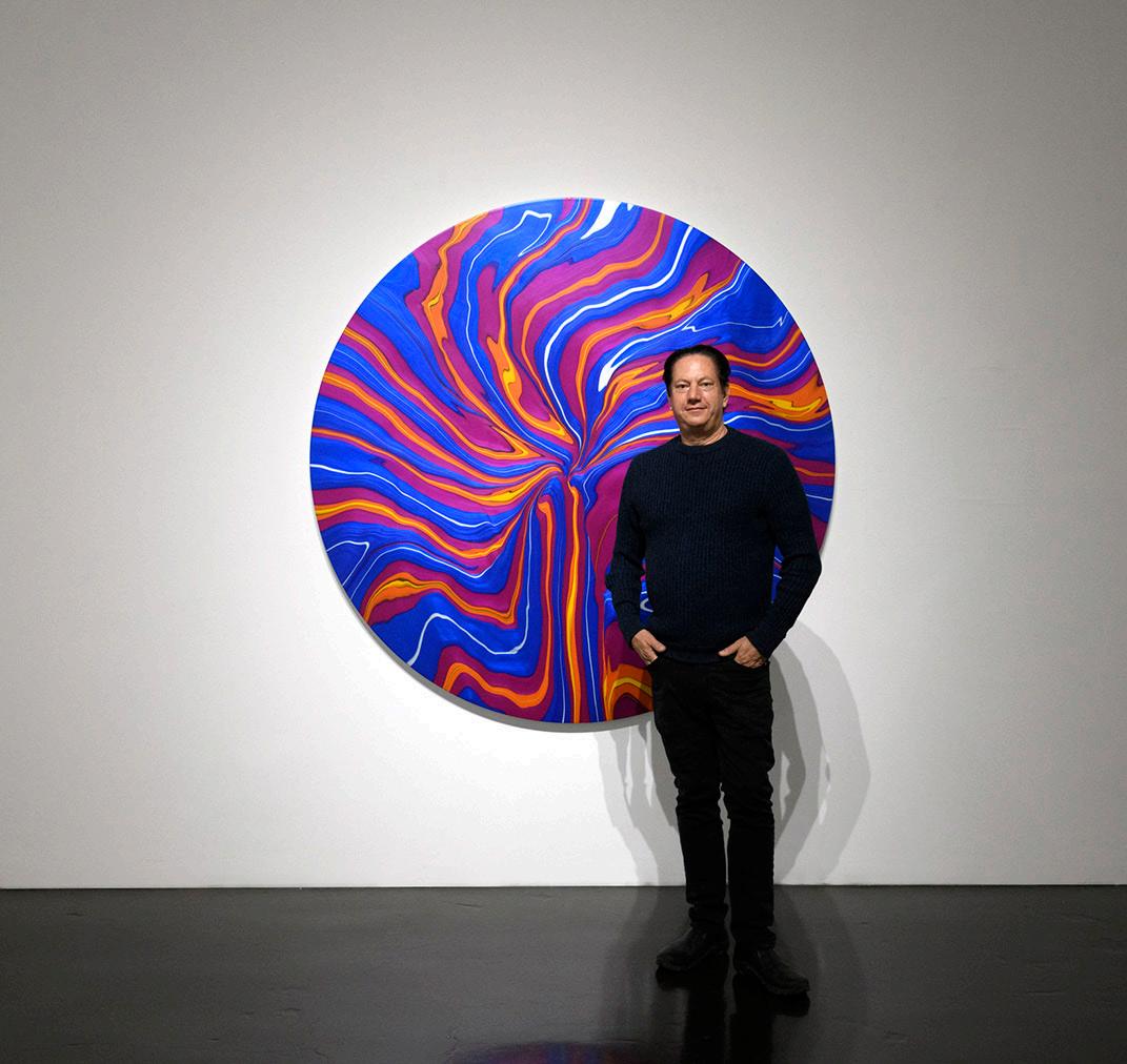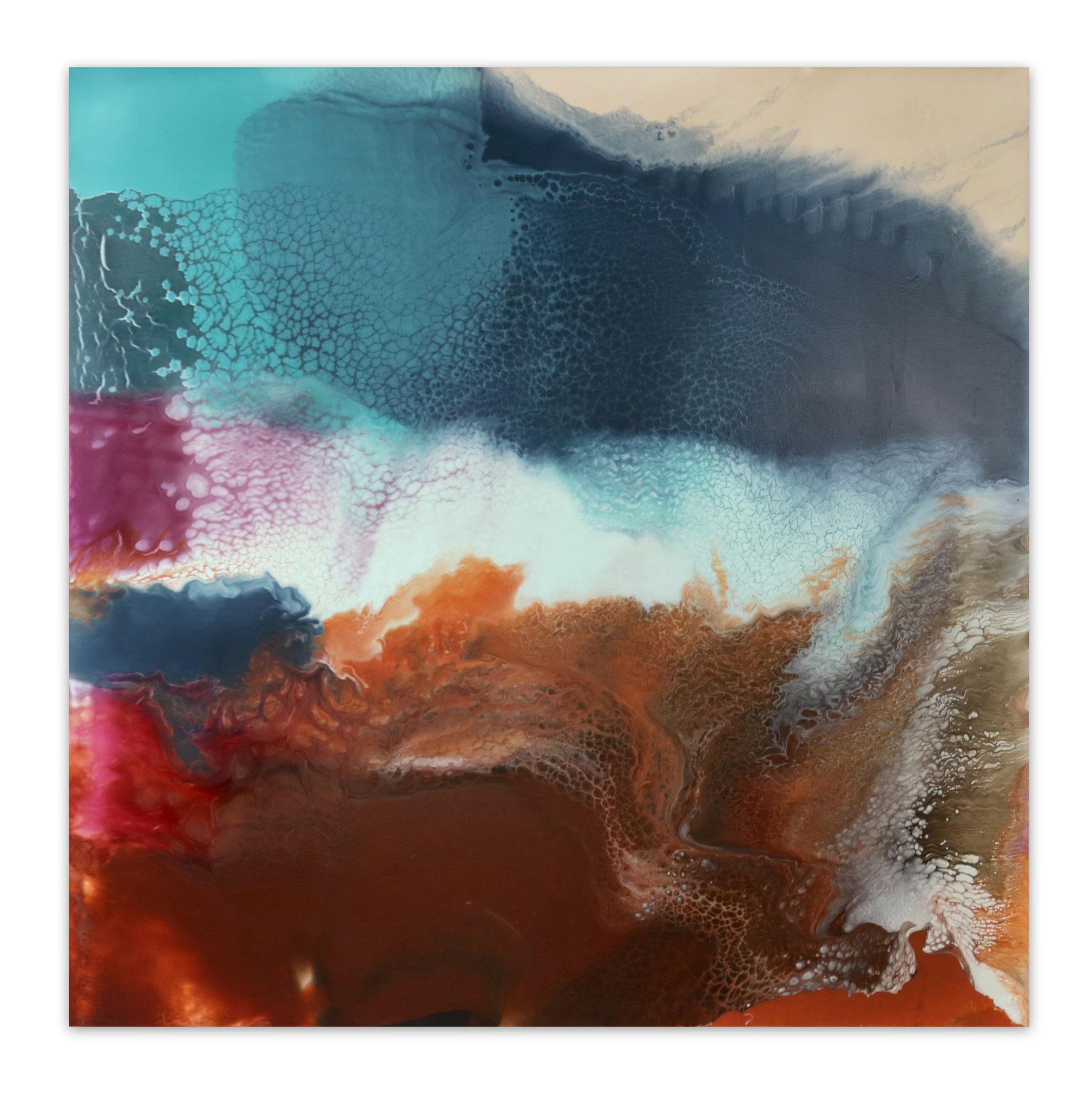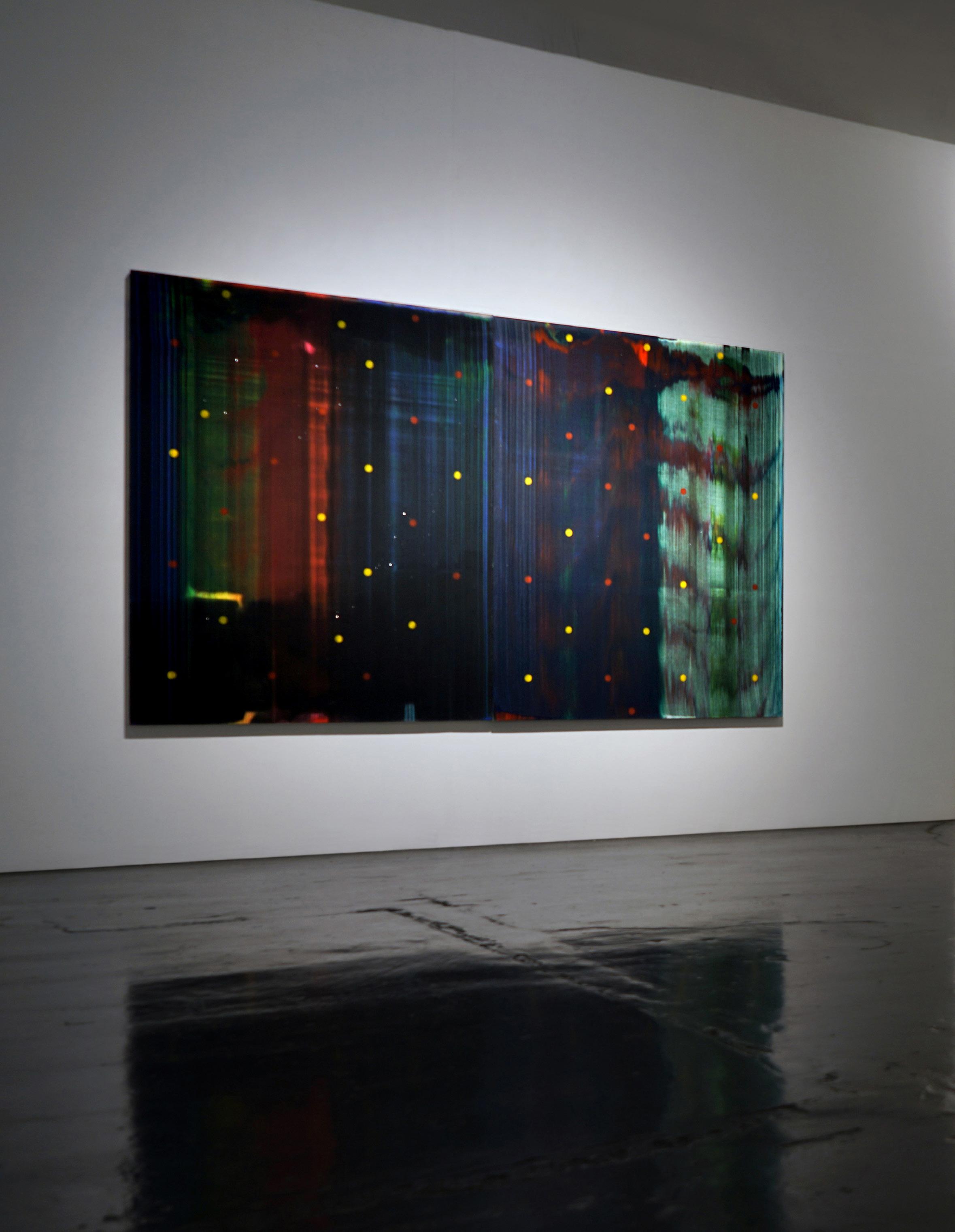 Andy Moses is known for his intensive exploration of paint’s alchemical properties. Through complex pouring and mixing processes, his luminous abstractions evoke natural forces rather than representational imagery.