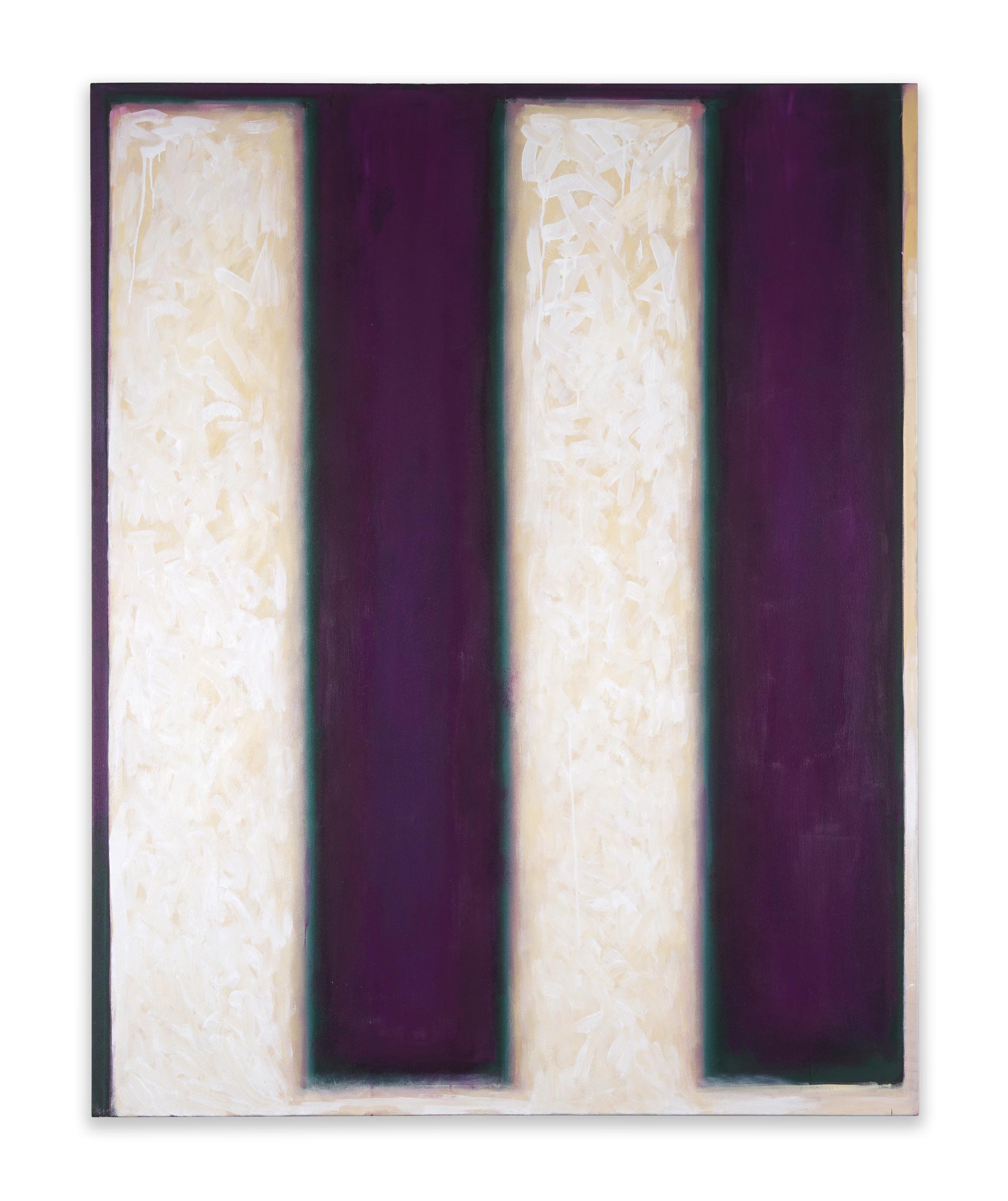 Lodato’s reductive, divided compositions are visual confrontations between the planar simplicity of form and the resonance of particular pigments. A disciple of the AbEx color field painter, Barnett Newman, Lodato’s sumptuously colored canvases echo Newman’s concept of using division as a way to merge different areas of the canvas into a sublime whole. Much like Newman’s “zips” of color, Lodato’s vertical bands draw the viewer deeply into the picture plane, causing them to intensely experience the work, both physically and emotionally.