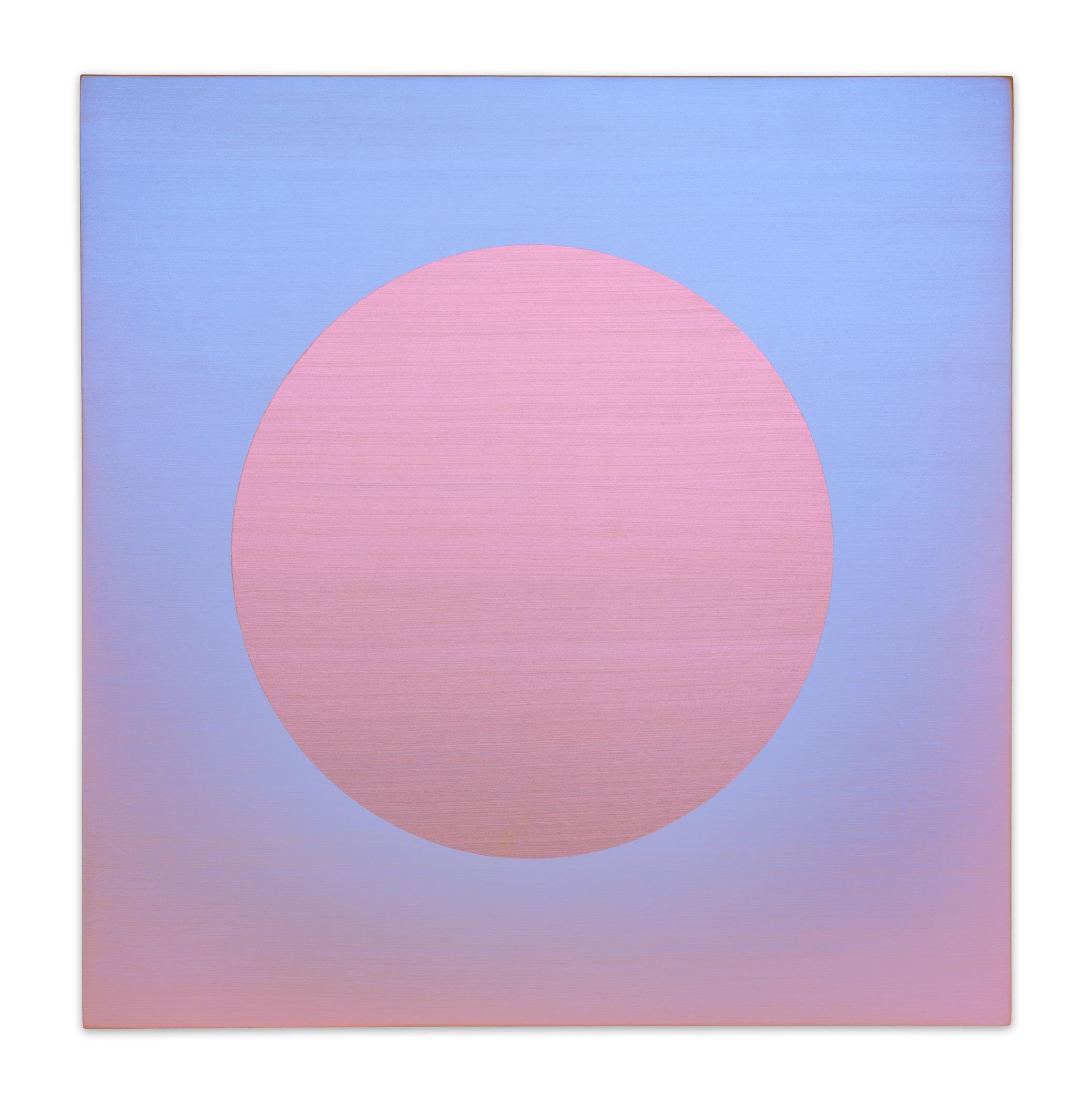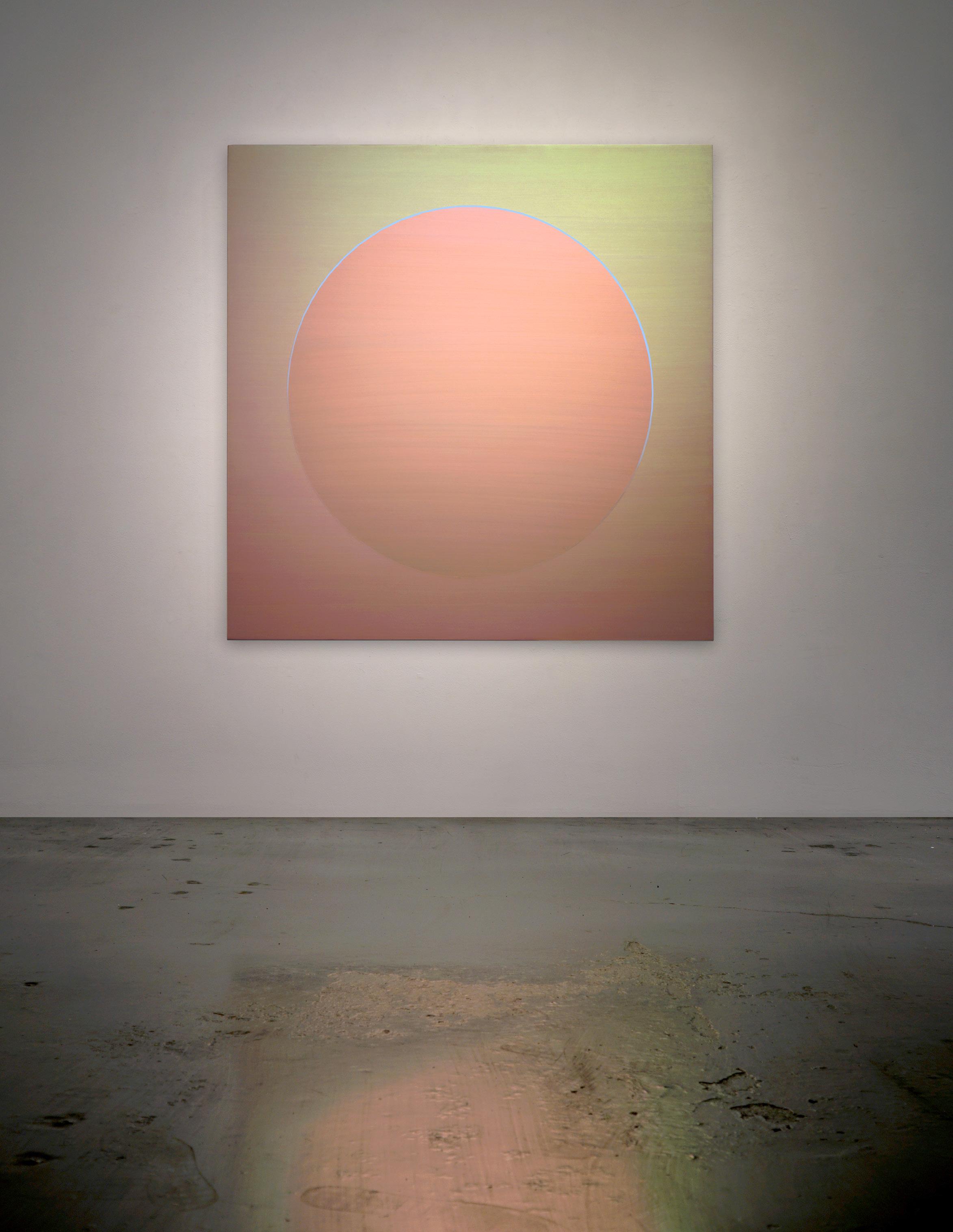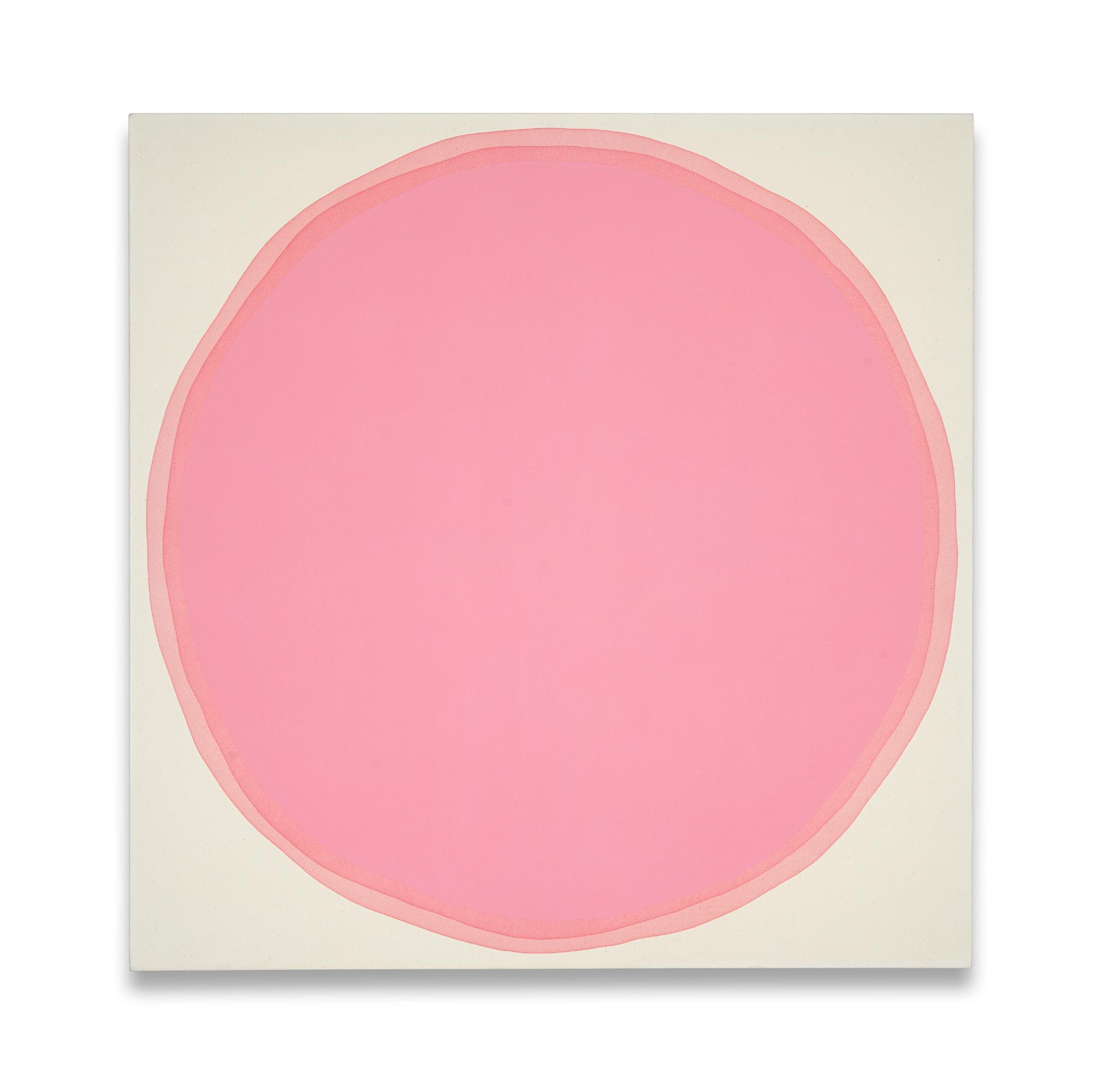 Writing about her circle paintings, art critic Christopher Miles observed: “Looking at them, one experiences an afterglow, which I like to think of as a kind of perceptual afterburner, that over time bathes the periphery in a complementary tint that allows you to take the color of the painting with you on your eye, like a taste lingering on your tongue.” The circle paintings have long been a central aspect of Arrowsmith’s practice, emerging from her meditative process.