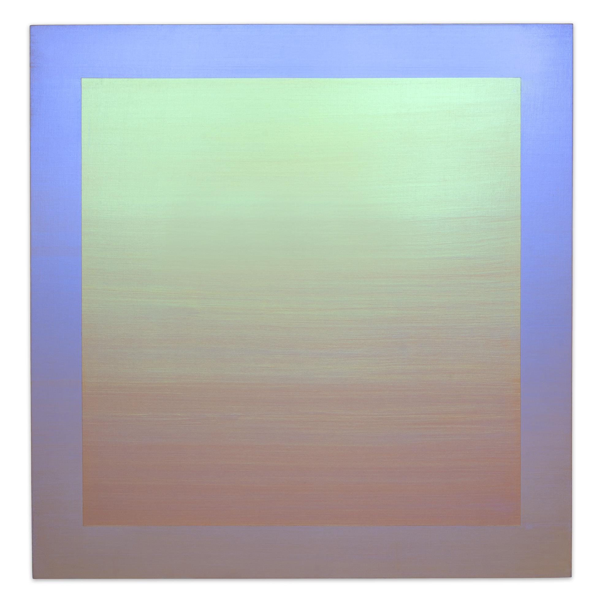 Francis has continued this pursuit with a series of gossamer-like paintings with colors that appear in constant flux, changing as one moves about them. Utilizing interference paints – a medium of crushed, titanium-coated mica that refracts light - the colors in these pieces shimmer and shift depending on the angle of the viewer and the reflection of light. Rectangular shapes conform to the shape of the canvas, creating a framework of change as viewers move. What one sees becomes inherently tied to their particular perspective and the character of the light at any given time.